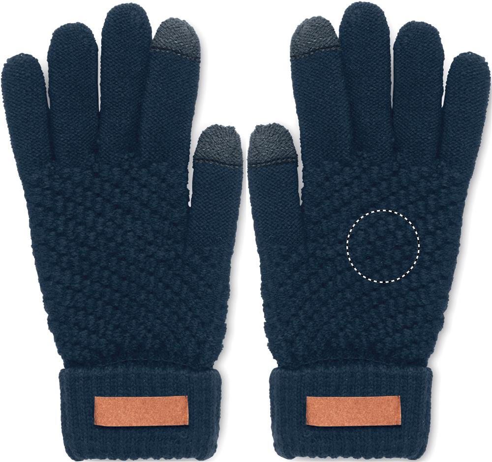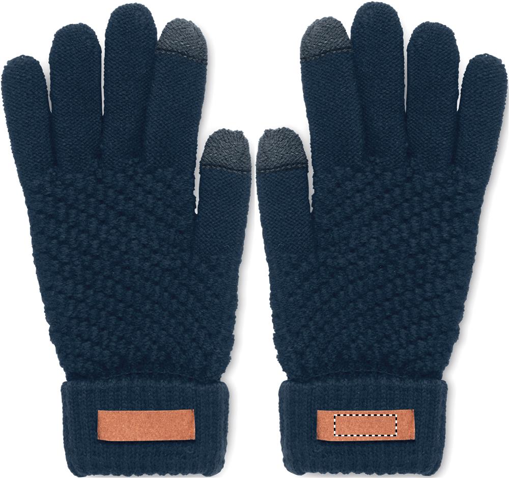Tactile gloves for smartphone in RPET with label for printing area.