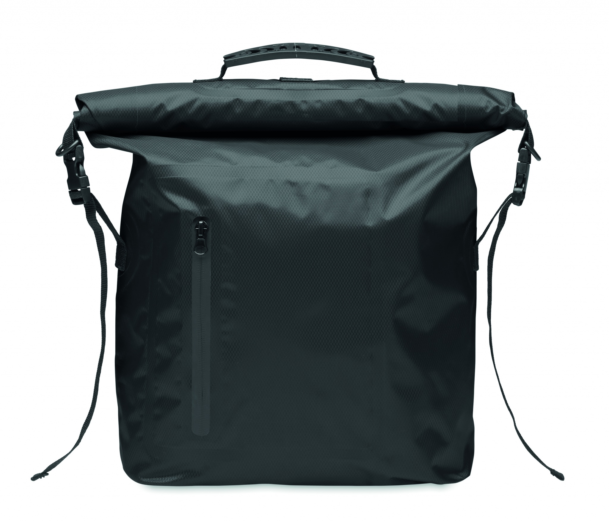 RPET 210D polyester waterproof rolltop backpack. Capacity: 30L.