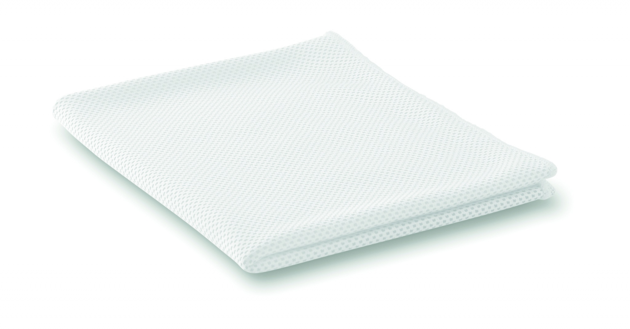Sports towel, high water absorbency. 55% polyamide and 45% microfiber.