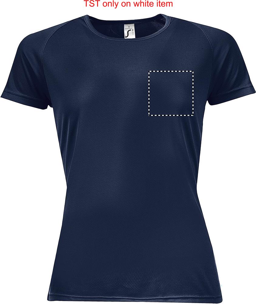 SOL'S SPORTY Women's T-shirt in 140g/m² breathable polyester material with raglan sleeves and flatlock seams makes this product ideal for all your sports activities. Figure-sewn fit, banded collar and longer back. It comes in a variety of sizes and colours as well as in neon colours. Fabric details: 140g/m2 100% polyester mesh. Only sold with print. Sublimation print available on white item only.
