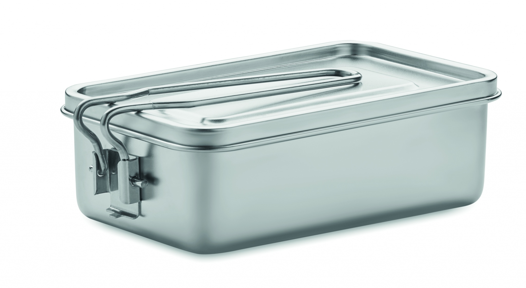 Stainless steel lunchbox with removable locking handle. Capacity: 750 ml.