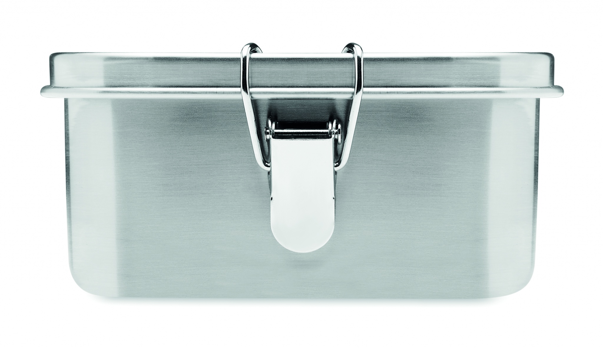 Stainless Steel lunch box with strong and secure side buckles. Including inner divider. Capacity: 1200 ml.