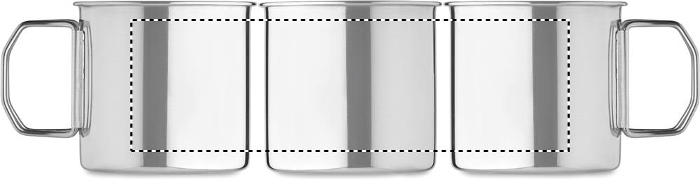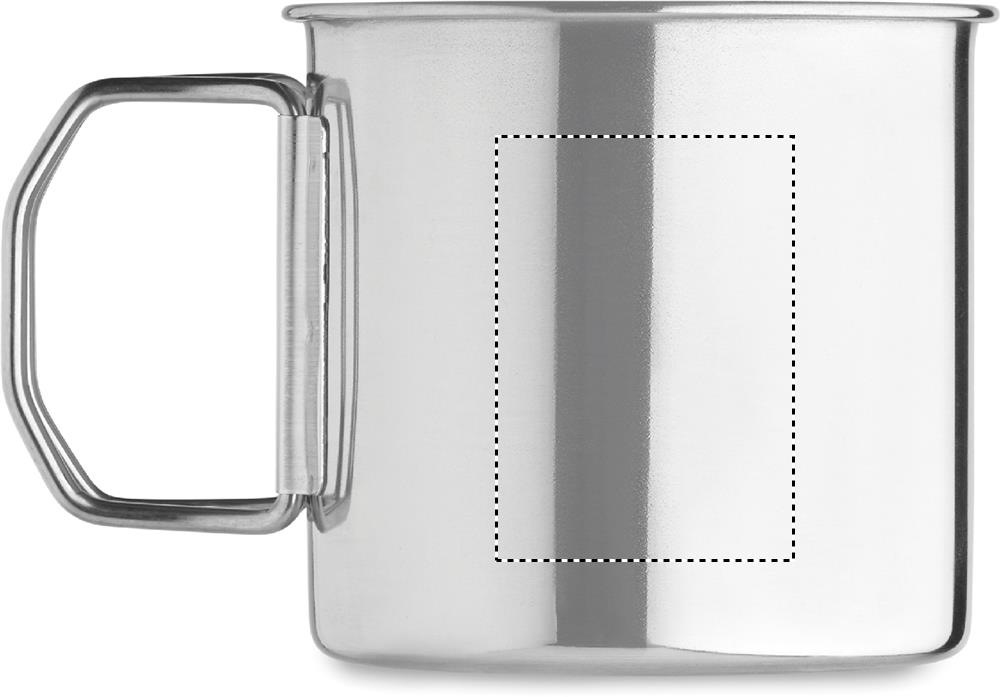 Single wall stainless steel mug with foldable handle. Capacity: 330 ml.