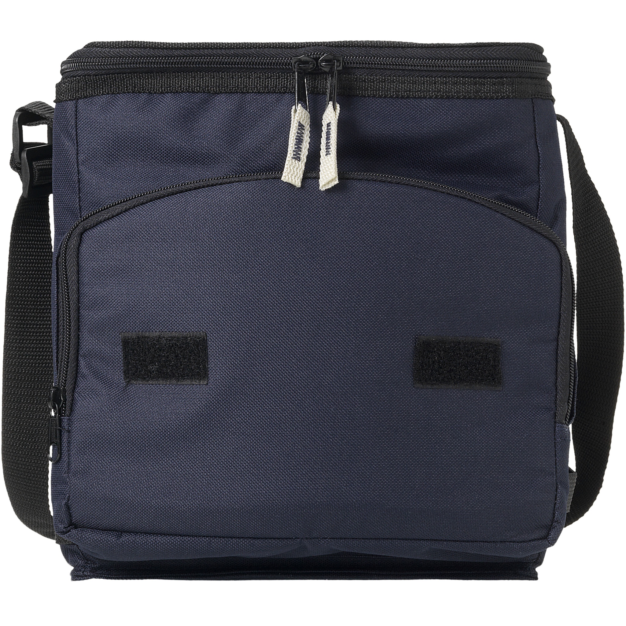 Foldable cooler bag with zipped main compartment and zipper front pocket. Adjustable shoulder strap. The cooler bag can be folded flat due to the hook & loop on front pocket. Accessories not included.
