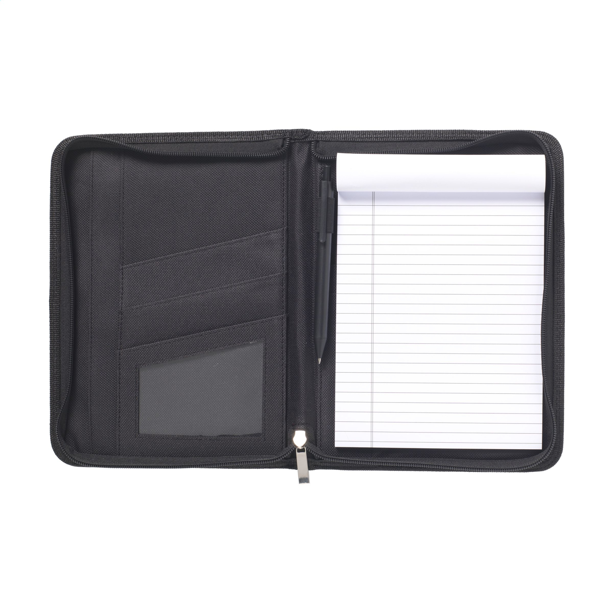 Conference/document folder made from fine bonded leather, in A5 format. With a range of pockets and zip closure. Incl. writing pad and ballpoint pen. Each item is individually boxed.