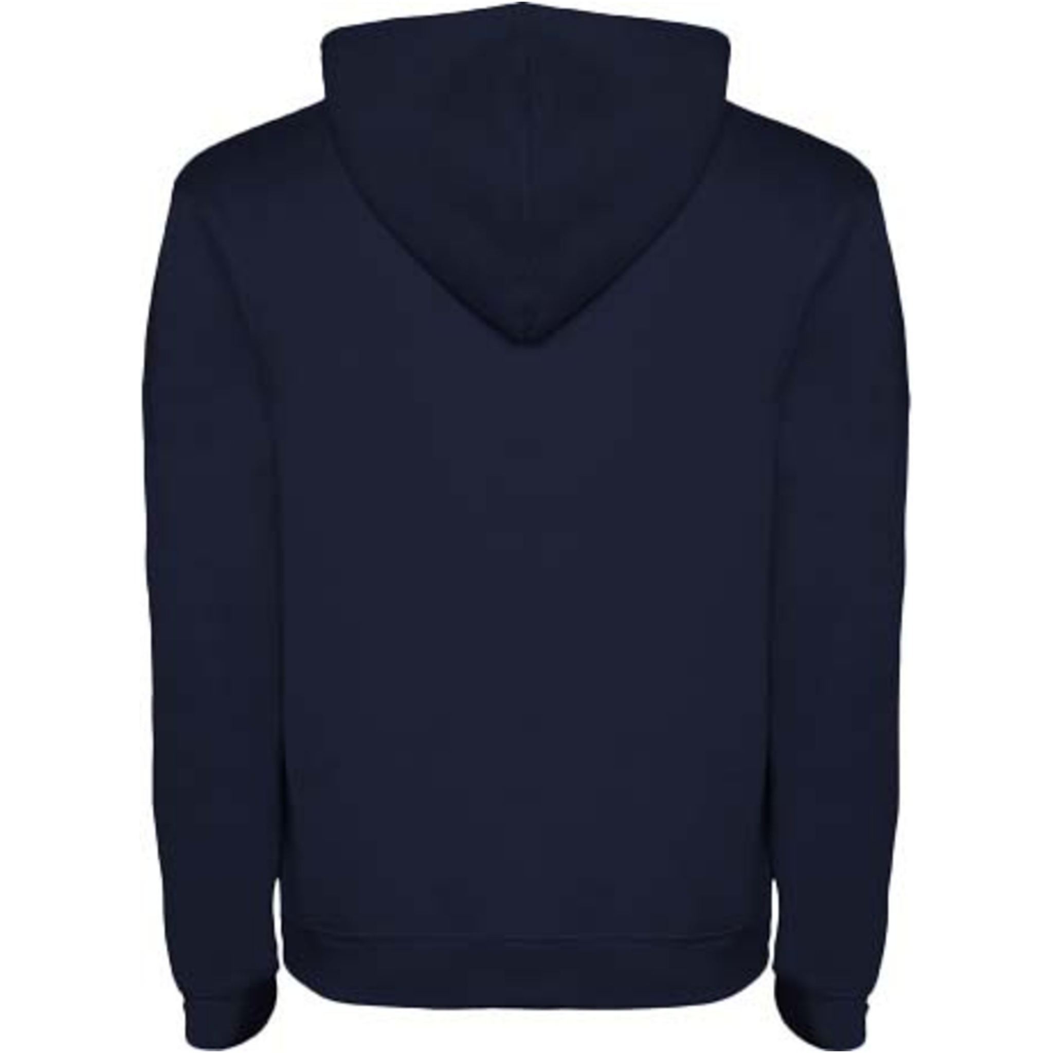 Hoodie with double fabric, adjustable drawcord, reinforced covered seams in collar and kangaroo style pocket. Available in uni-colours and two-tone colours. 1x1 elastane rib in cuffs and waistband. Removable label. The model is 185 cm and is wearing size M.