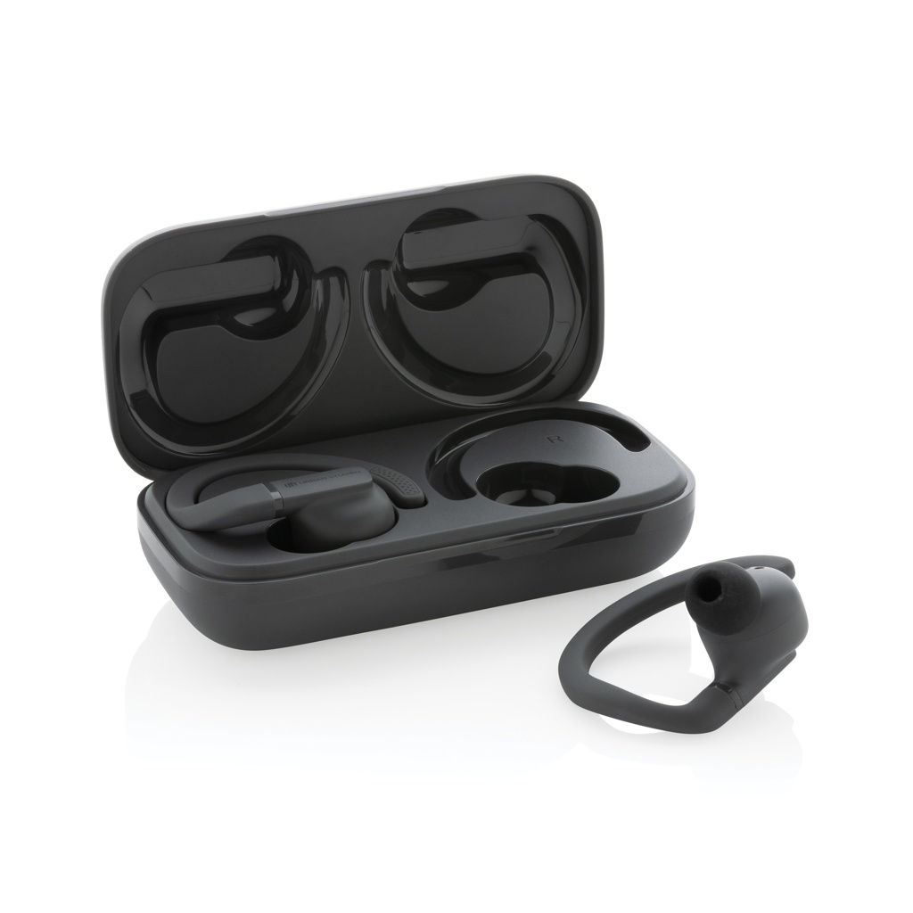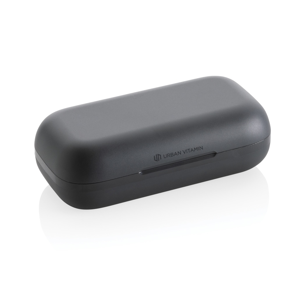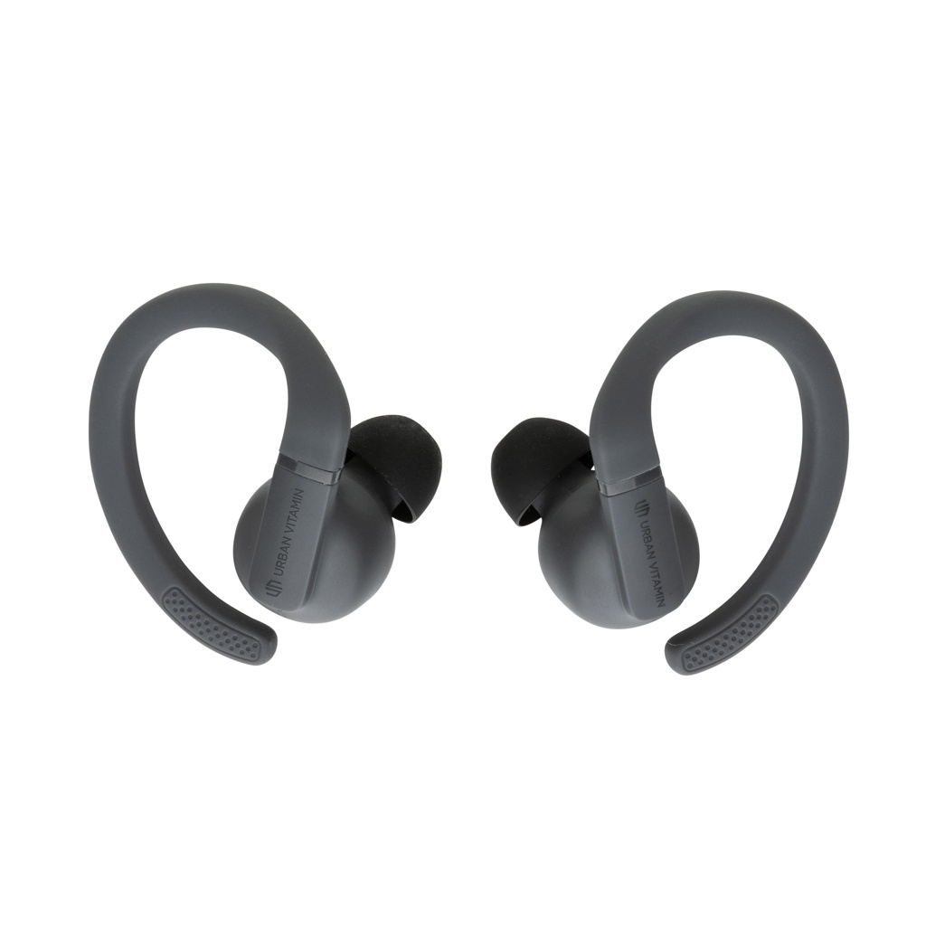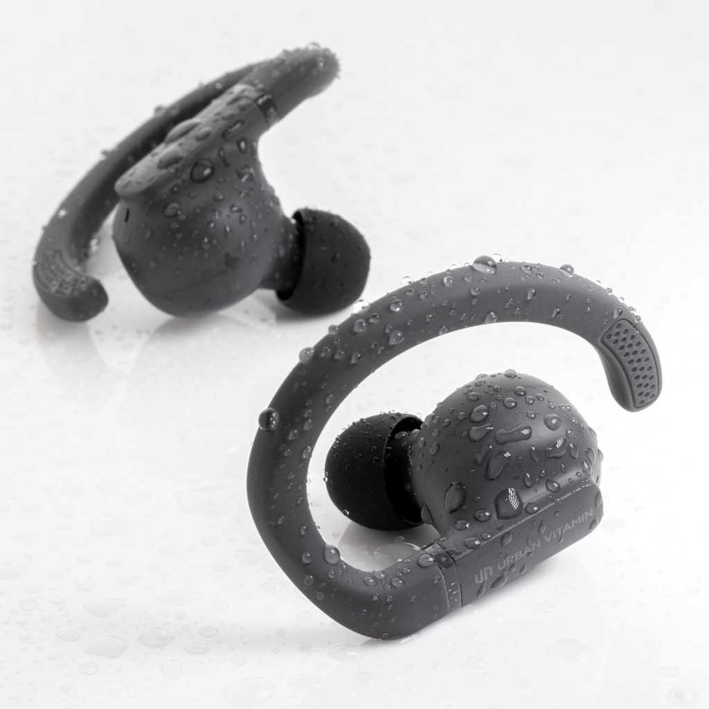 Outperform yourself and take your fitness to the next level with these perfect fit work out earbuds. The customisable, perfect fit ear hooks are adjustable with multiple ear tip options for extended comfort, and are made to stay in place, no matter how intense your workout is. These lightweight earbuds are built for peak performance with a sturdy design for IPX5-rated sweat, dust and water resistance. With up to 8 hours hours of listening time due to advanced BT 5.3 in each earbud and powerful, balanced sound, you’ll always have your music to motivate you. The earbuds and 600 mah charging case are made with made with RCS (Recycled Claim Standard) certified recycled ABS/TPE. Total recycled content: 55 % based on total item weight. RCS certification ensures a completely certified supply chain of the recycled materials. The earbuds can be re-charged 3 times fully in the charging case. Urban Vitamin items are made without PVC and packed in in plastic reduced packaging.