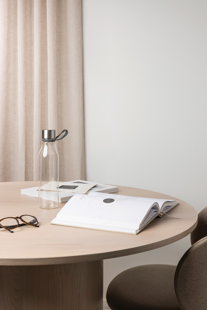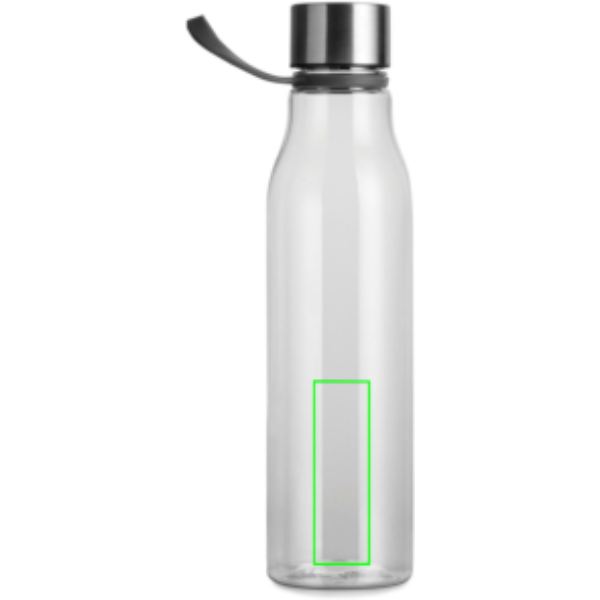 Water bottle made from BPA-free RCS certified recycled PET. With a generous 800 ML capacity, this bottle is ideal for workouts, travel, or whenever you need extra hydration. The loop doubles as a convenient handle, perfect for carrying on the go or hanging on exercise equipment. The ideal shape allows it to fit in most cup holders. Exclusively suitable for cold drinks. Handwash only. Certified by RCS (Recycled Claim Standard), this certification ensures that the entire supply chain for recycled materials is verified. The product contains 68% RCS certified recycled PET.