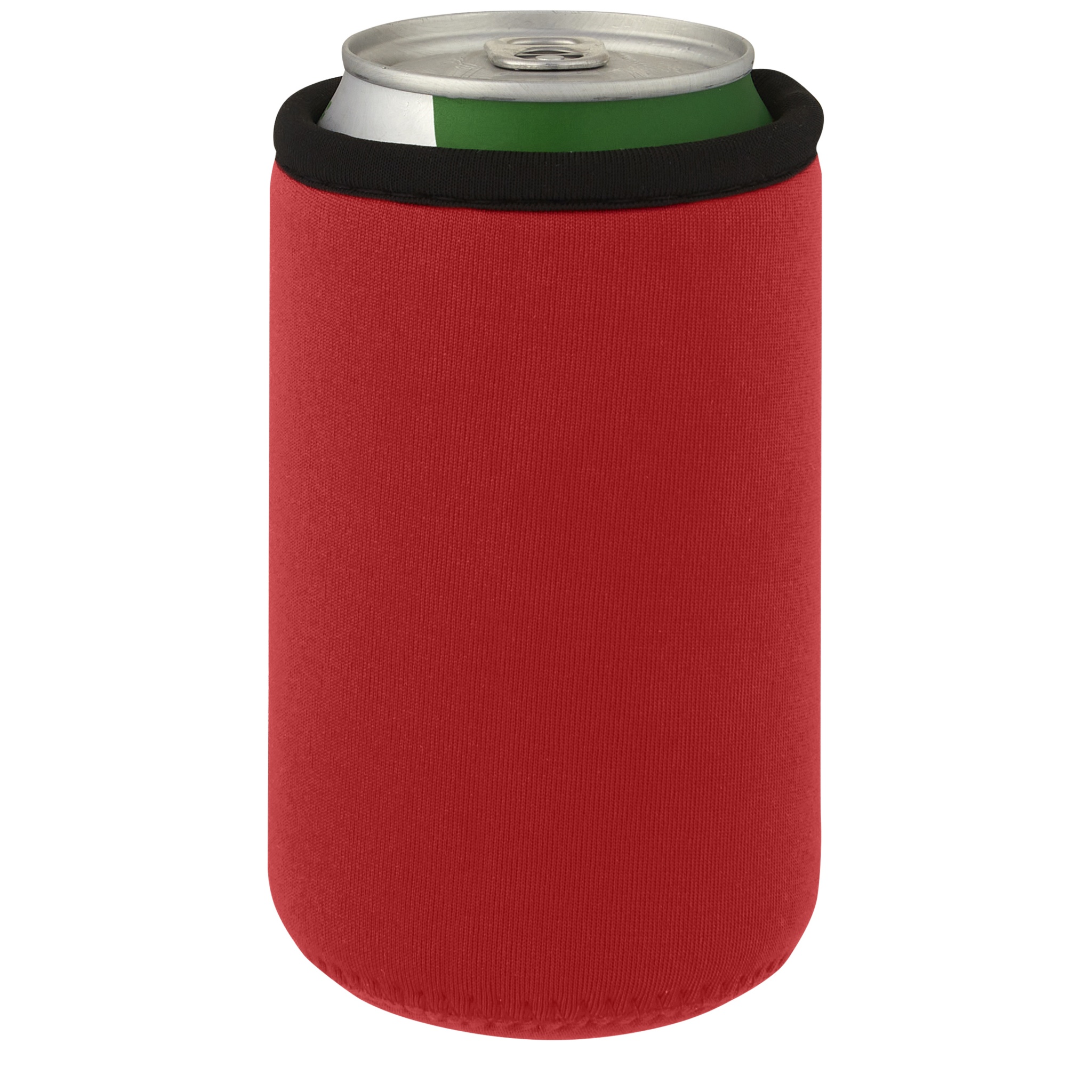 Recycled neoprene can sleeve holder that folds easily to fit in your pocket or purse. It has extra insulation keeping the beverage cool for a longer time, while also making the can comfortable to hold.