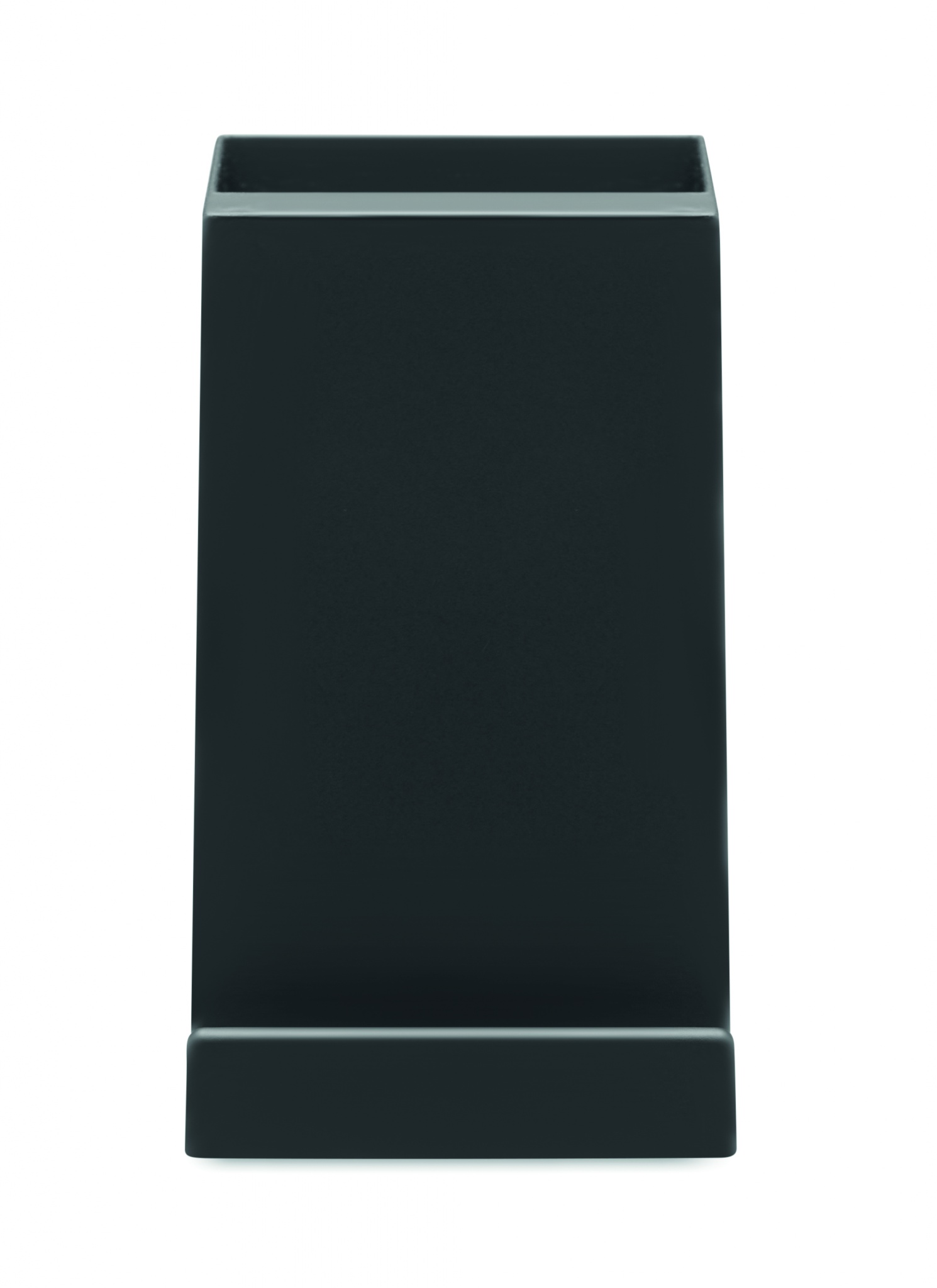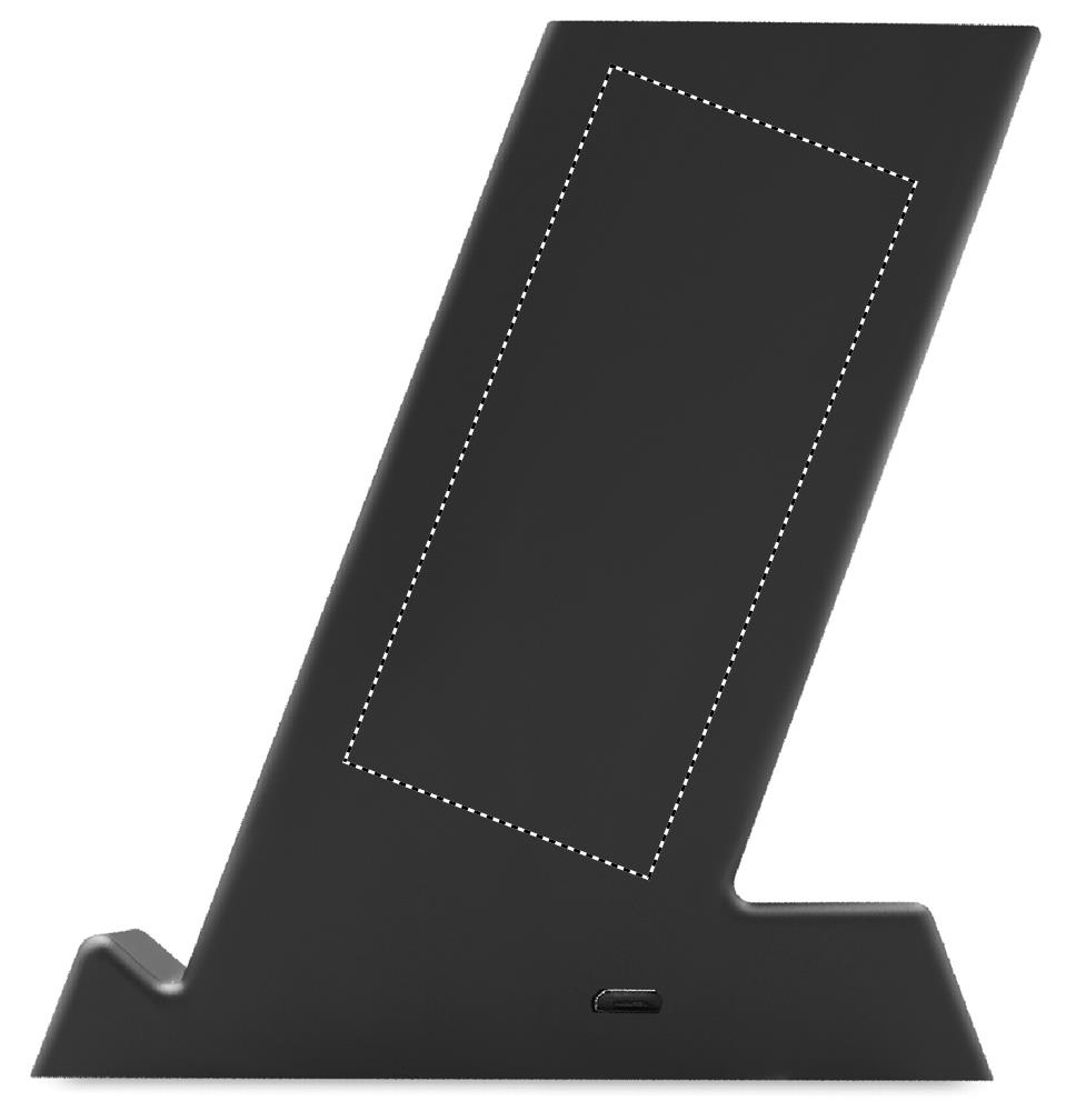 15W dual coil wireless charger with pen holder in ABS. Output: DC 9V/1.67A (15W) for quick charging. 1 USB-A port power output. Compatible with latest Androids, iPhone® 8, X and newer.