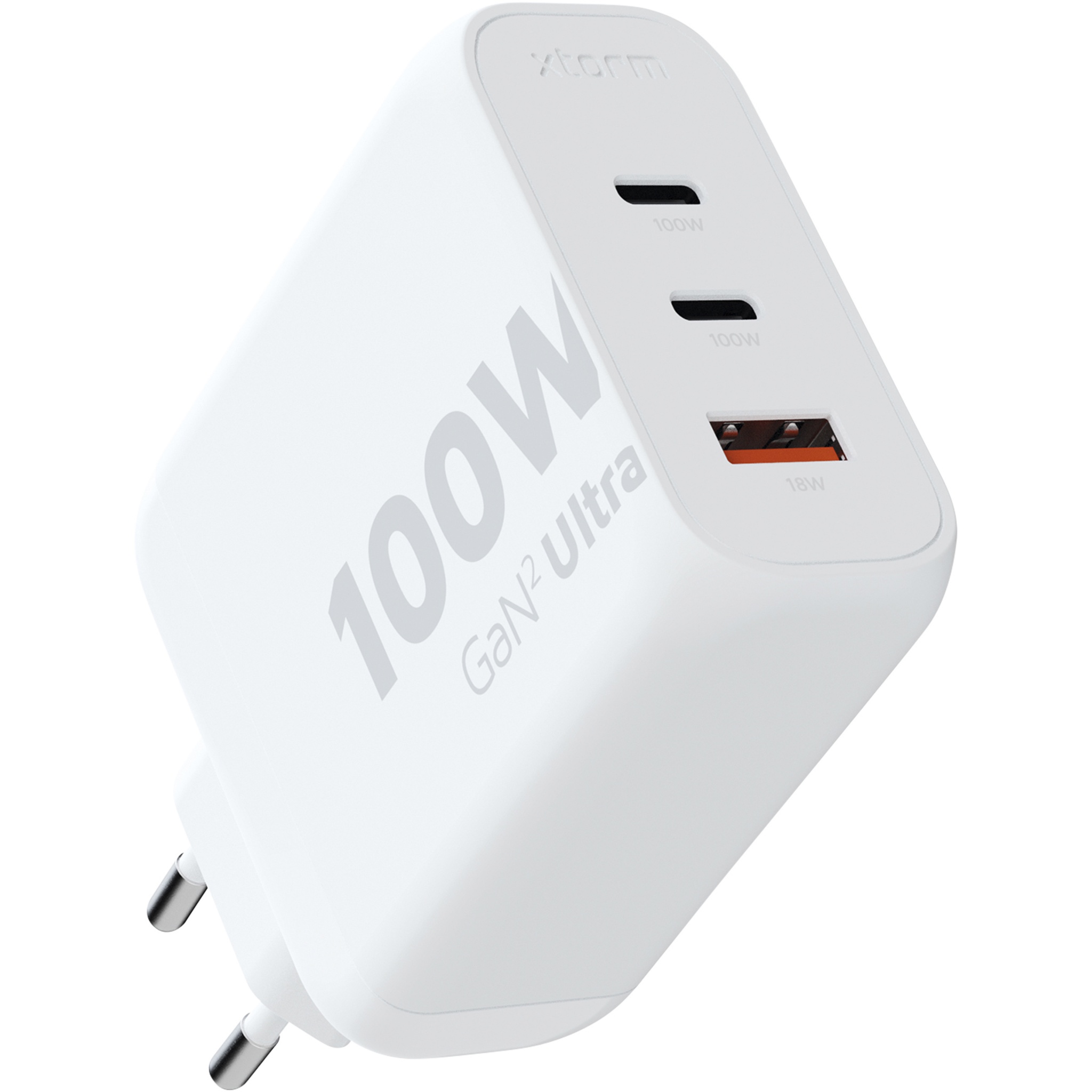 The 100W GaN² Ultra wall charger is designed to be more compact and powerful than ever before. With its compact design and triple-port functionality, this wall charger is perfect for your travels, office, or home. To reduce waste and contribute to a more sustainable future, the charger is made from 97% recycled plastic. Output: 2 x USB-C 100W power delivery, and 1 USB-A 18W quick charge 3.0. Delivered with a user manual.