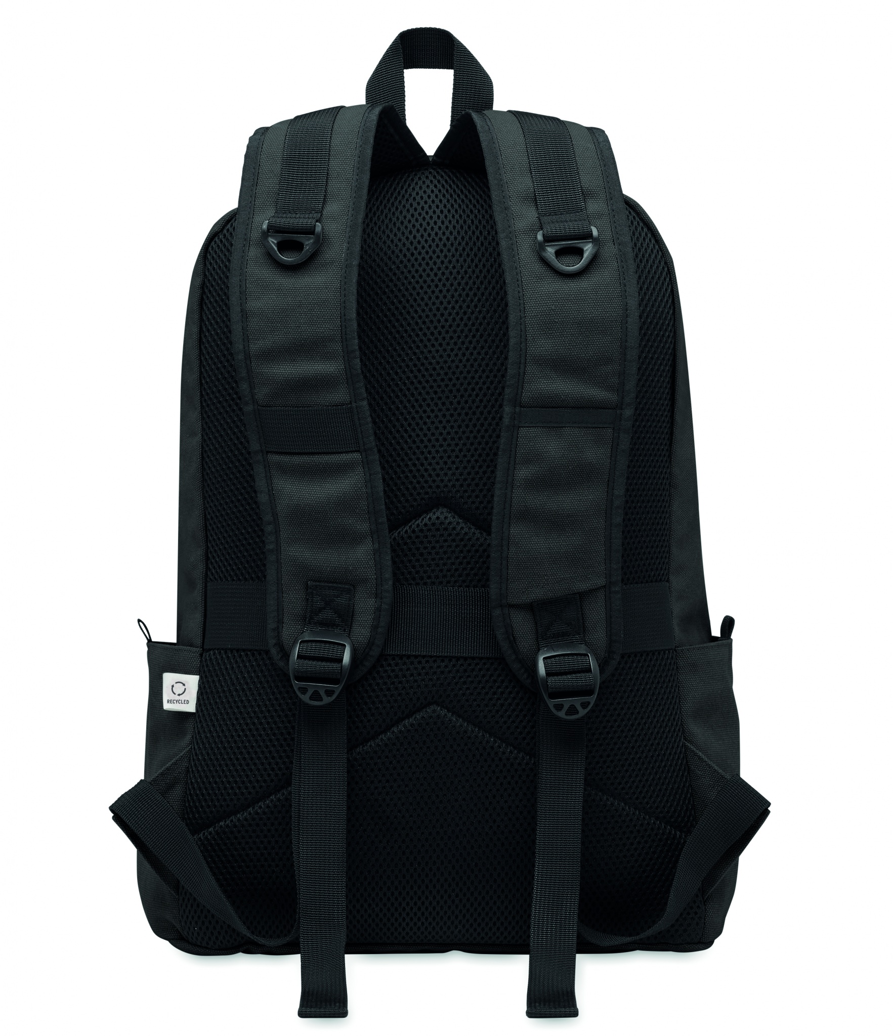 15-tollise sülearvuti seljakott, valmistatud taaskasutatud eelkasutatud puuvillast, kohandatava trükilahendusega, Must