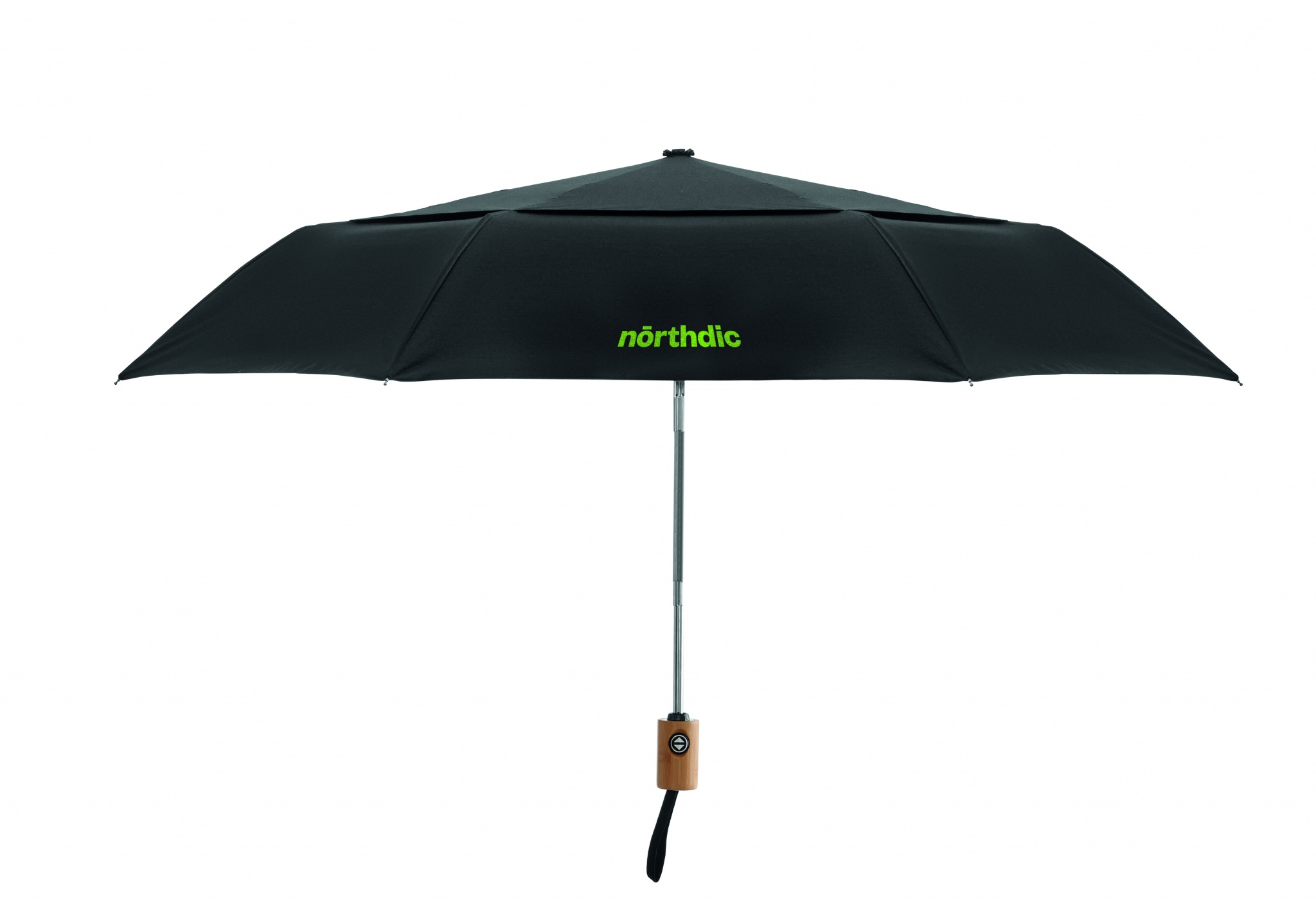 21-tolline 2-kordselt avatav tuulekindel vihmavari 190T polüpuuvillast (70% polüester ja 30% puuvill) täisalumiiniumvarre, otste ja bambusest käepidemega. Mustad klaaskiust ribid. Kaasas sobiv kott. Automaatne sulgemine.