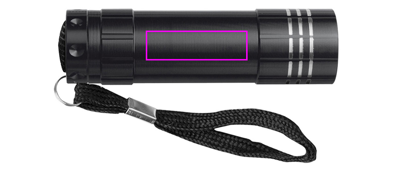 COB alumiiniumist taskulamp kuue COB-ga. Kanname teie logo keskosale lasergraveeringuga. Välja arvatud kolm AAA patareid (tellige need kohe, vt viimast lehekülge või artiklit 999400).