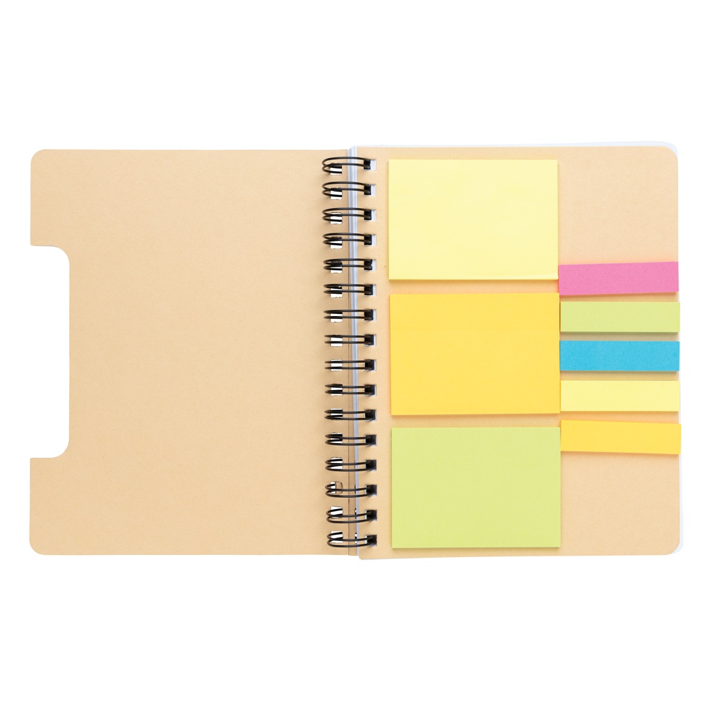 Logo trade reklaamkingituse pilt: A5 Kraft spiraalmärkmik kleepmärkidega