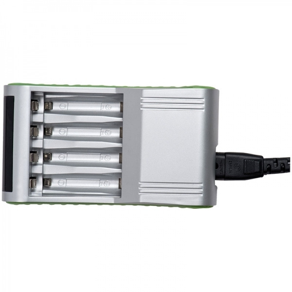 See akulaadija on tõeline uuendus. Kahe tunni jooksul saate laadida ja taaskasutada kuni 4 leelispatareid (AA / AAA leelis) või isegi NiMH akut. Kaasas toitepistik. Trükime teie logo hõbedasele pinnale.