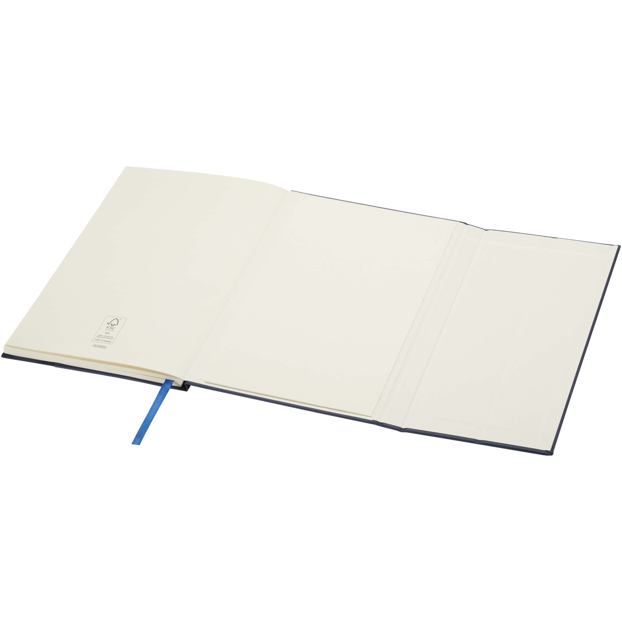 Alejandra A5 kõvakaaneline sülearvuti on valmistatud taaskasutatud PU-plastikust ja RPET-ist ning sisaldab 80 vooderdatud lehte 70 g/m² kreemjavärvilist paberit ning sellel on lindimarker ja akordionitasku.