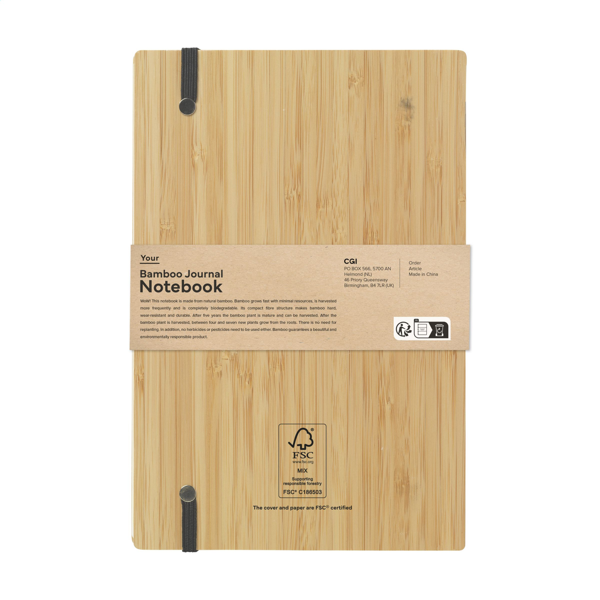 Logo trade reklaamkingituse pilt: Bamboo Journal palja seljaga paberist märkmik A5