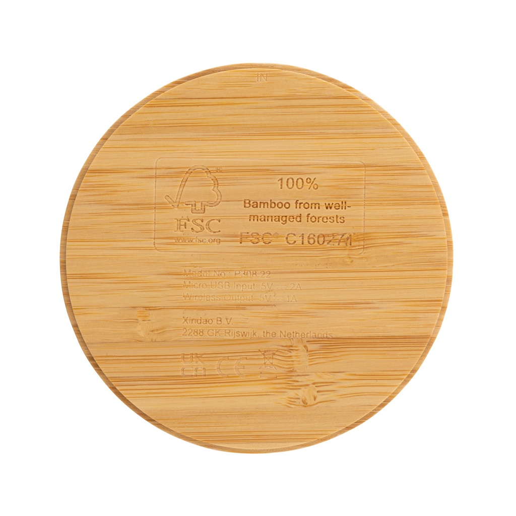 Logotrade ärikingituse foto: Bambusest 5W ümmargune juhtmevaba laadija