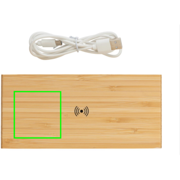 Logo trade firmakingi pilt: Bambusest äratuskell 5W juhtmevaba laadijaga