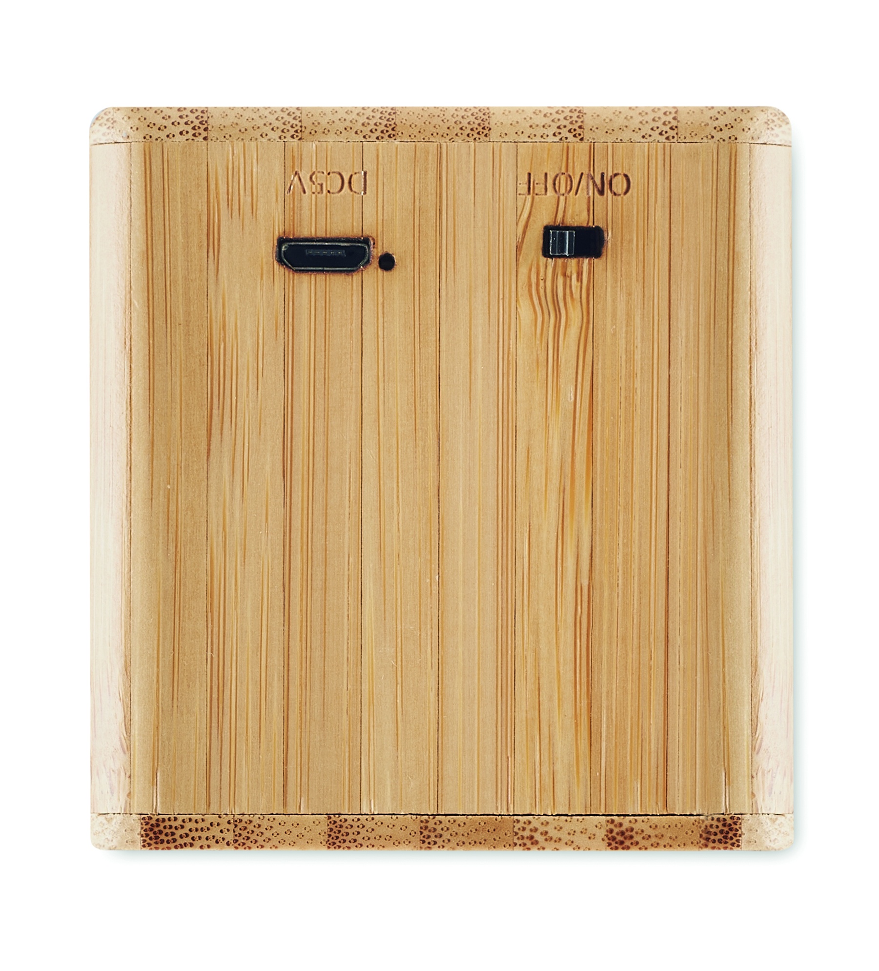 5.0 juhtmevaba kõlar bambusest korpusega ja LED-tule indikaatoriga. Kaasas 1 taaslaetav liitiumaku 500 mAh. Väljundandmed: 3W, 3 Ohm ja 5V. Mänguaeg ca. 4 tundi (70% mahust). Bambus on looduslik toode, ühe eseme värvis ja suuruses võib esineda väikesi erinevusi, mis võivad mõjutada lõppviimistlust.