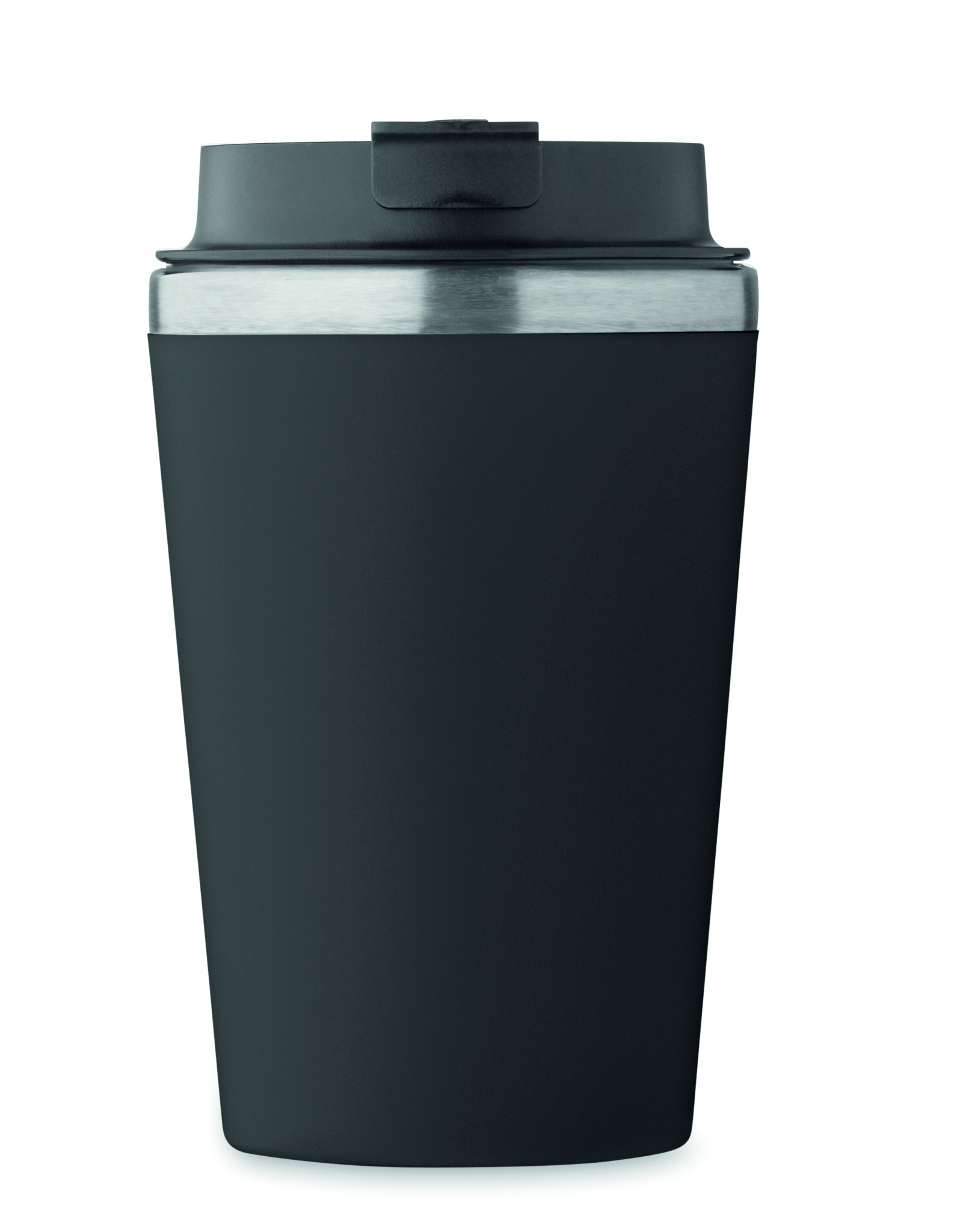 Must topelt seinaga PP termoskruus, mille sisesein on taaskasutatud roostevabast terasest (90% taaskasutatud roostevaba teras ja 10% roostevaba teras), keraamilise sisemusega. Lekkevaba. Mahutavus: 350 ml.