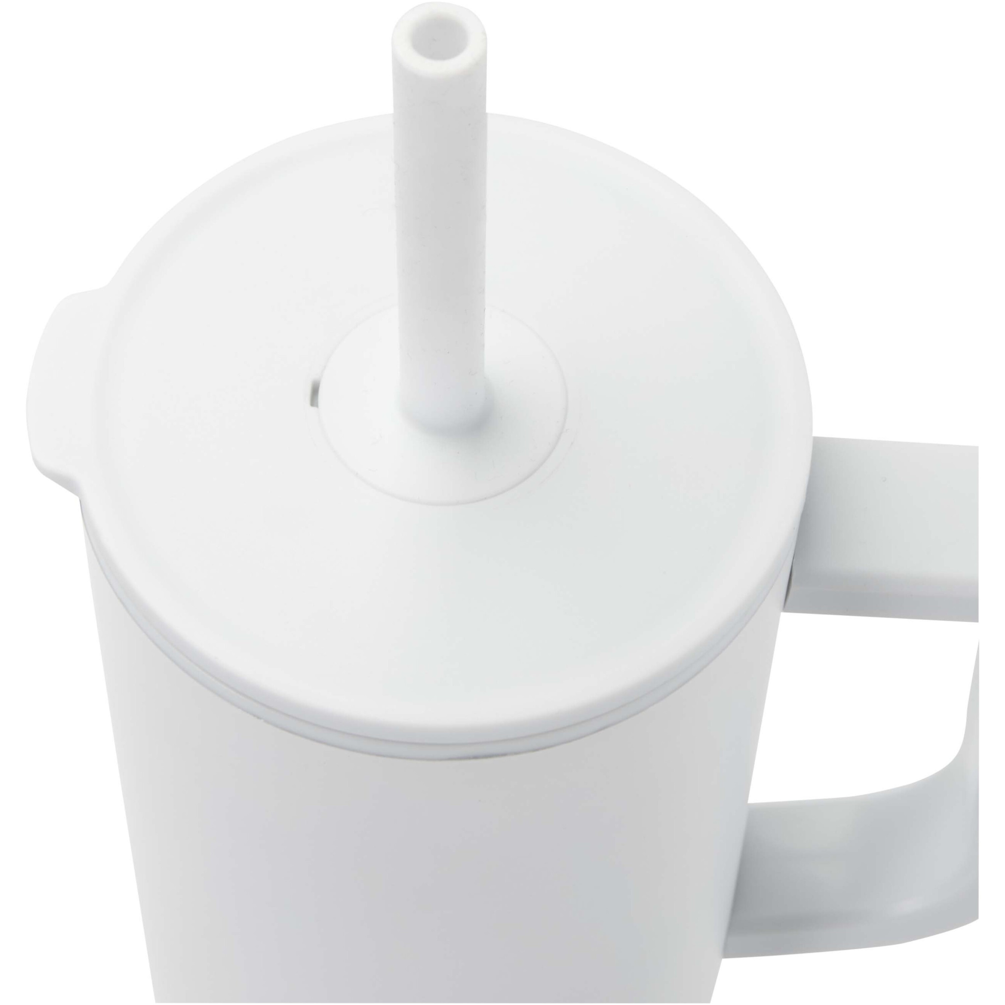 RCS-sertifikaadiga taaskasutatud roostevabast terasest valmistatud termoskruus. Sisemus on valmistatud plastikust. Kruusi juurde kuulub silikoonist kõrs ja pritsmekindel kaas. Kruus sobib ka kuumade jookide jaoks, kuid neid ei ole soovitatav kõrrega juua. Joogi jahtumiseks eemaldage kaas enne joomist. Mahutavus: 900 ml. Ainult käsitsi pestav.