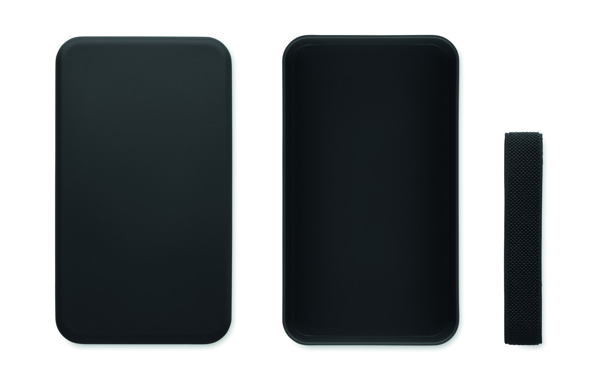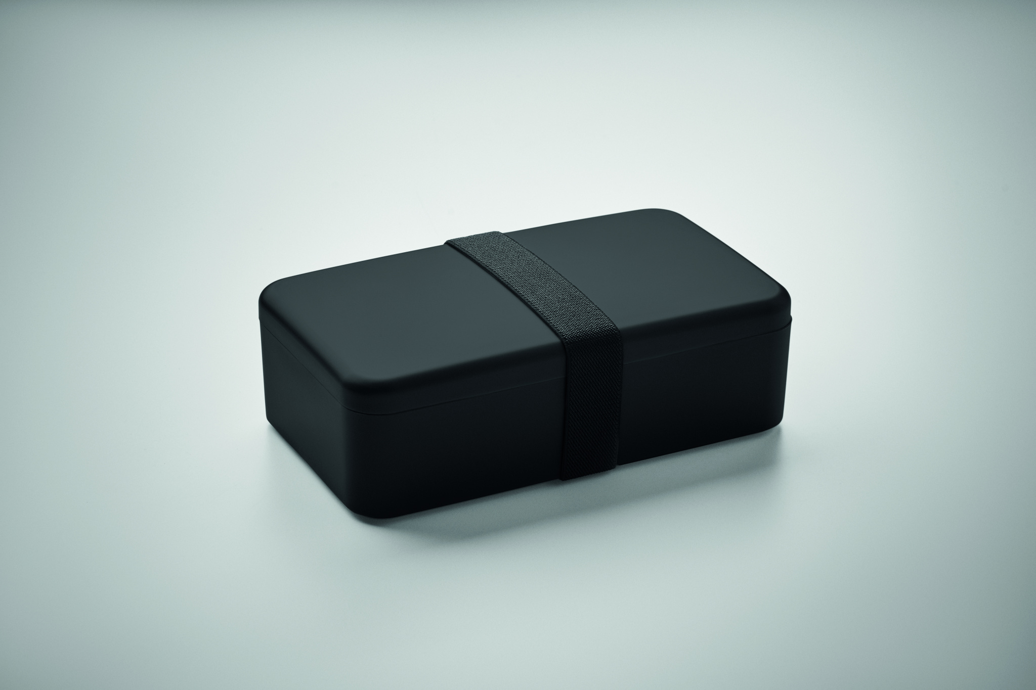 Must lõunasöögikarp PP-st RPET elastse kummipaelaga. Mahutavus: 750 ml.