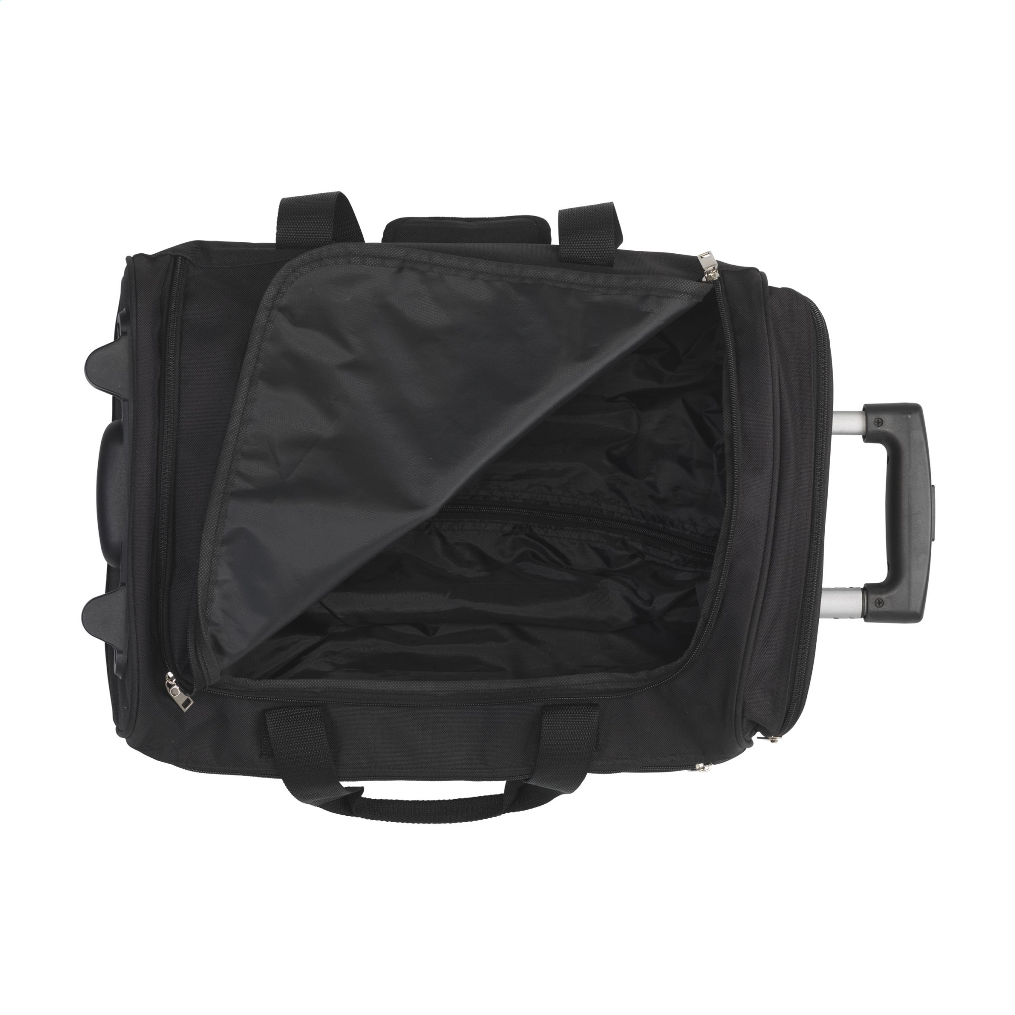 Praktiline 18-tolline käru/nädalavahetuse kott, mis on heaks kiidetud käsipagasiks, valmistatud 600D polüestrist. Teleskoopkäepideme, 2 ratta, kanderihmade ja käepidemega. See võimaldab kotti erineval viisil transportida. Kotil on suur põhisahtel, 2 lukuga taskut ja siseküljel lukuga võrktasku. Mahutavus ca. 35 liitrit.