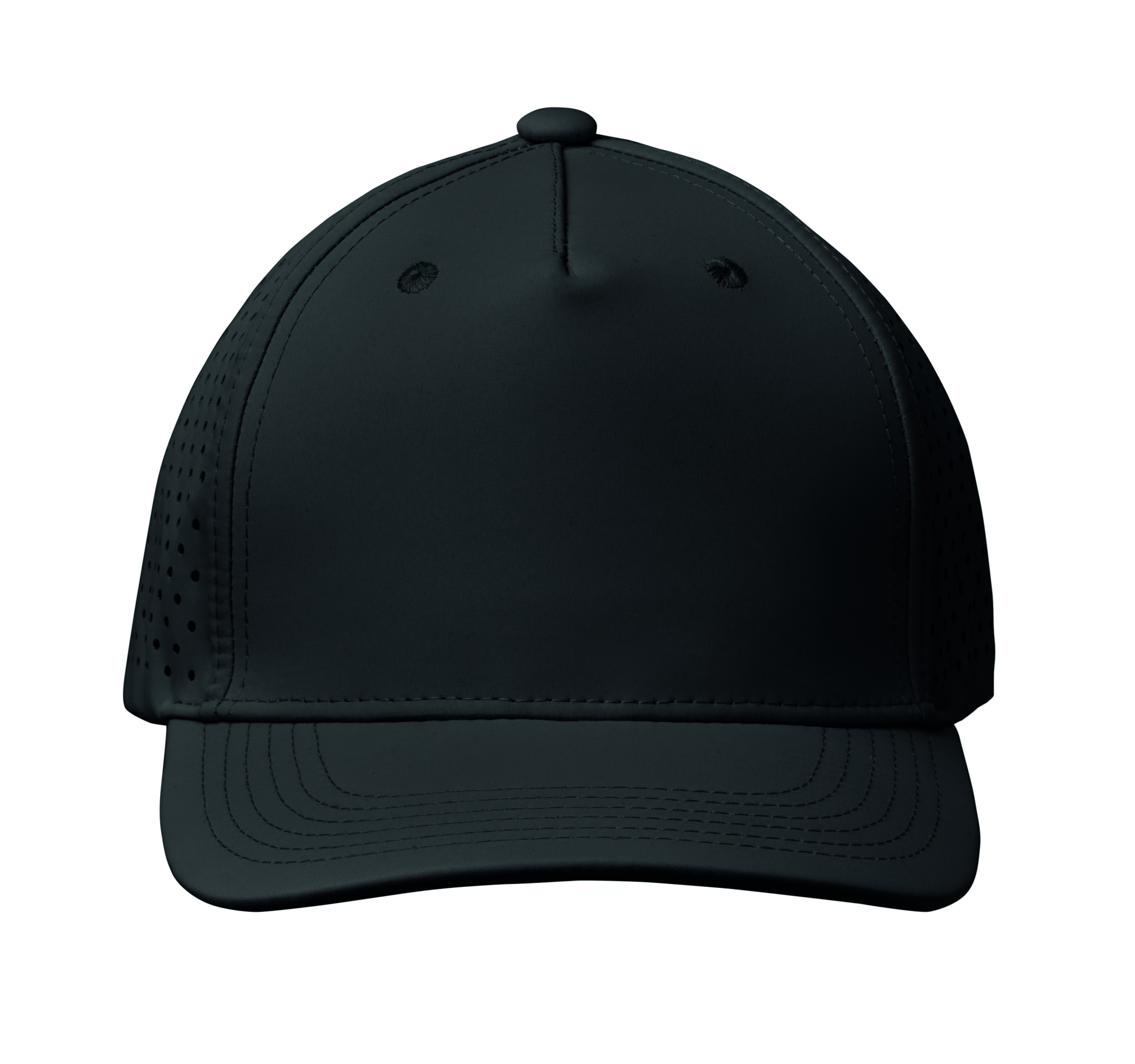 Must 5 paneeliga nokamüts reguleeritava sulguriga ning laseriga perforeeritud aukudega. Toode kuivab kiiresti, on higi- ja vetthülgav. 200 gr/m²