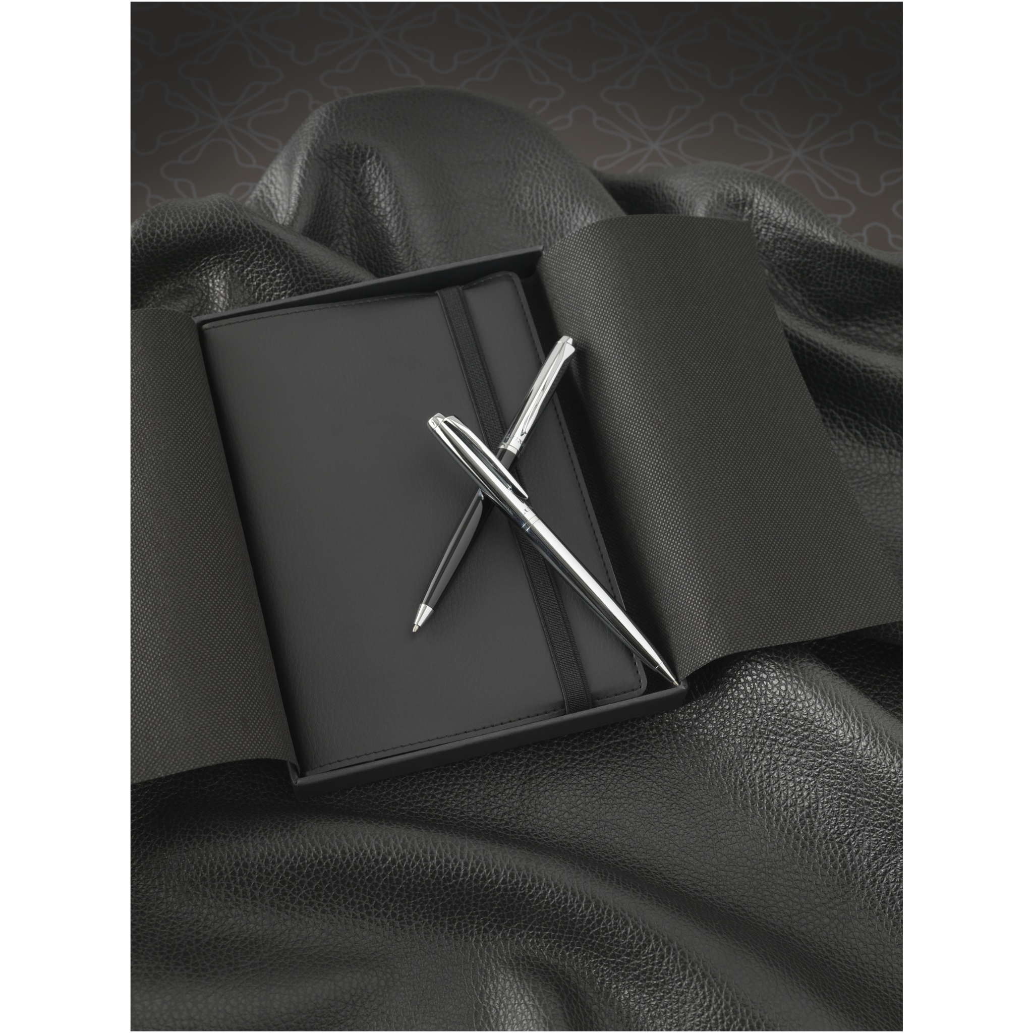 Eksklusiivse disainiga pastapliiats läikivate kroomi aktsentidega. Sealhulgas esmaklassiline musta tindiga täidis ja pakitud ''LUXE'' kinkekarpi (15x3,5x2 cm).