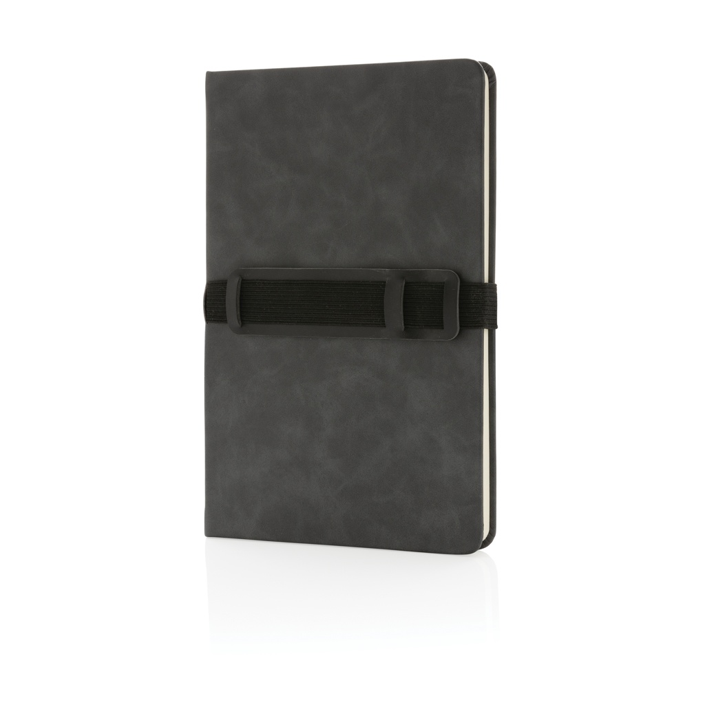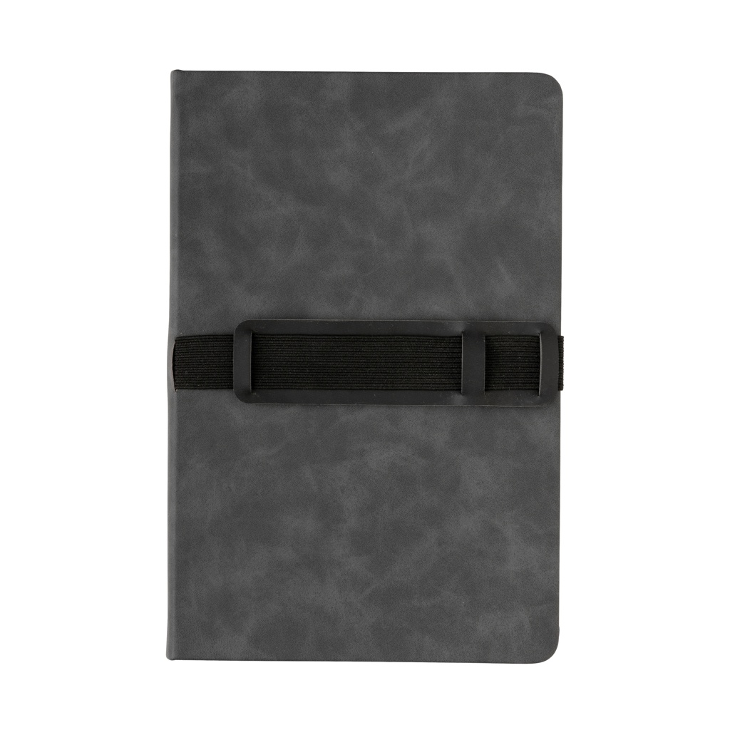 Deluxe kõvakaaneline PU-märkmik A5 telefoni ja pliiatsihoidjaga, hall