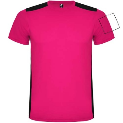 Kergesti kuivav, tehniline ja hingav kangas. Meeskonna kael. Kahe polüesterkanga kombinatsioon seljal ja õlgadel. Ees linnusilma kangas ja taga hingav 3D võrkkangas. Niiskuse imamiseks ettevalmistatud kangas. Dekoratiivne siksakiline seljapiste külgedel ja õlgadel. Seljamuster veidi pikem. Eemaldatav etikett.