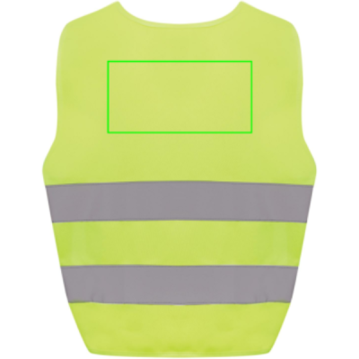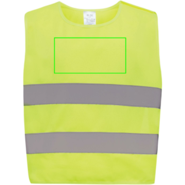 XS-suuruses hästi nähtav vest, mis on mõeldud 3-6-aastastele lastele, pikkusega 90-140 cm. Sellel vestil on ruumi kaunistamiseks nii esi- kui ka tagaküljel. See on varustatud konksu ja aasa sulguritega õlgadel ja allosas, et suurendada ohutust ja hõlpsasti selga panna. Elastsed ribad vastasküljel pakuvad paindlikkust, võimaldades seda mugavalt kanda paksude mantlite peal. Seda vesti on rangelt testitud ja see vastab EN 17353:2020 tüübile AB3. Lisaks järgib see määruses (EL) 2016/425 II kategooria isikukaitsevahendite kohta sätestatud isikukaitsevahendite juhiseid. Valmistatud GRS-sertifikaadiga taaskasutatud PET-st. Taaskasutatud kogusisaldus: 55% eseme kogukaalust. GRS-sertifikaat tagab taaskasutatud materjalide täielikult sertifitseeritud tarneahela.