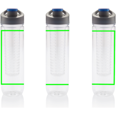 800 ml Tritan pudel puuvilja infusioonikambriga. Lisage oma vette rohkelt vitamiine ja maitseaineid, lisades infusioonikambrisse värskeid puuvilju. Infusioonikambrit saab kasutada ka vee jahutamiseks, lisades jääkuubikuid.