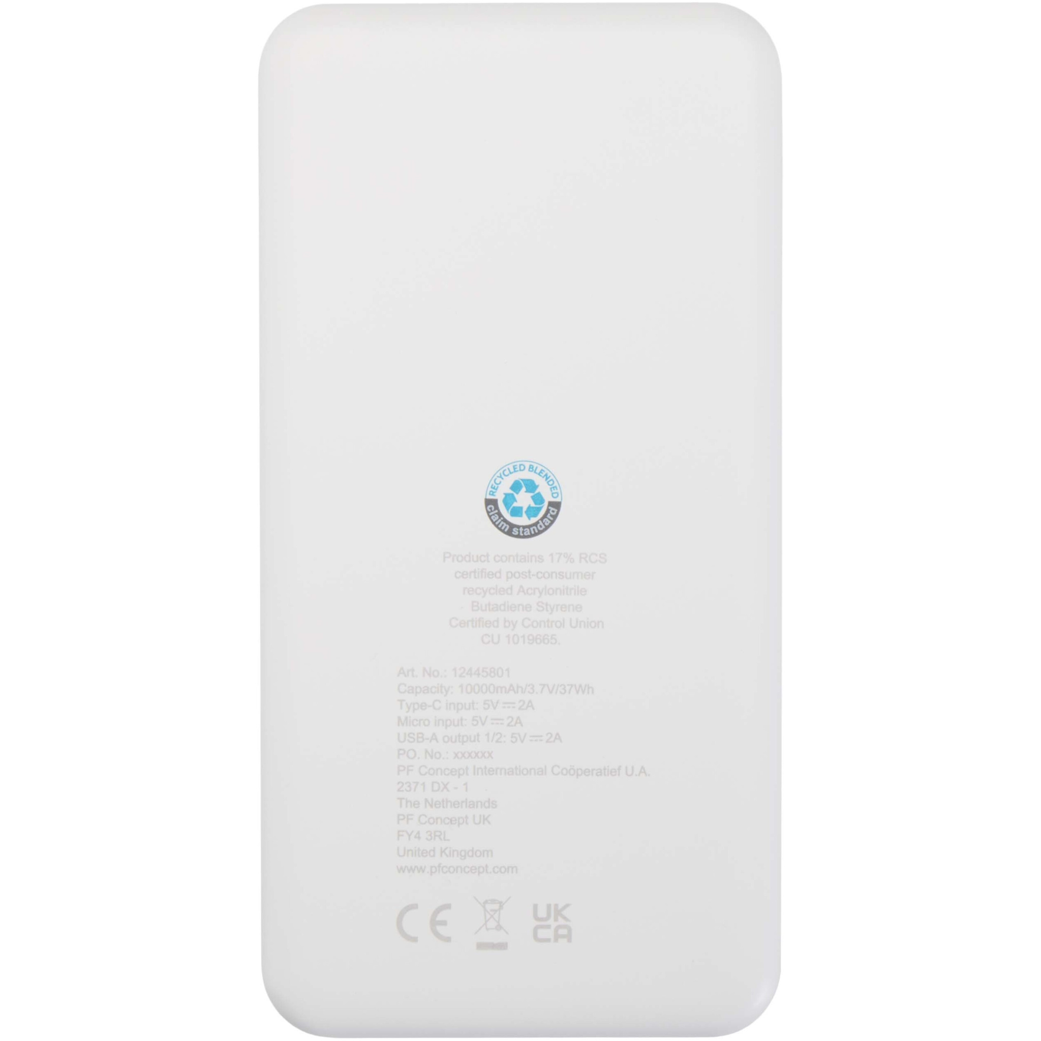 10 000 mAh akupank on valmistatud taaskasutatud plastist. Sellel on kaks USB-A väljundporti, C-tüüpi sisend-/väljundport ja micro-USB sisend paindlike laadimisvõimaluste tagamiseks. Laadimise oleku kuvamiseks on LED-indikaator.