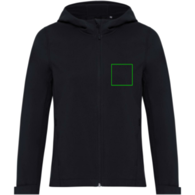 Naiste keskmise istuvusega softshell jakk, mis on valmistatud taaskasutatud polüestrist, 300 G/M² 3-kihilise kangaga, mille sees on kasutatud taaskasutatud TPU membraani ja pehmet mikrofliisi. Jopel on ees ümberpööratud tõmblukk ja küljepaneeli õmblustes lukuga taskud. Sellel on reguleeritav kapuuts, mille sisemised korgid on parema kaitse tagamiseks. Varrukate mansetid on reguleeritavad takjakinnitusega. Läbimõeldud lisatõmbluku tõmbaja ja puhas siseviimistlus taaskasutatud köitega. Jope on vetthülgav BIONIC-FINISH® ECO-ga (kangas on taaskasutatud TPU membraaniga kuni 5000mm veekindel). Tuulekindel ja hingav kuni 3000g/m2/24h. Ehtsate ringlussevõetud materjalide kasutamine ja keskkonnamõju väited on garanteeritud, kasutades AWARE™ häirivat füüsilist jälgimisseadet ja plokiahela tehnoloogiat. QR-koodi skannides saate juurdepääsu spetsiaalsele digitaalsele passile. 2% iga müüdud toote tulust annetatakse veebisaidile Water.org. Sellel tootel on OEKO-TEX® STANDARD 100 sertifikaat. Saadaval ka meestele sobivad.