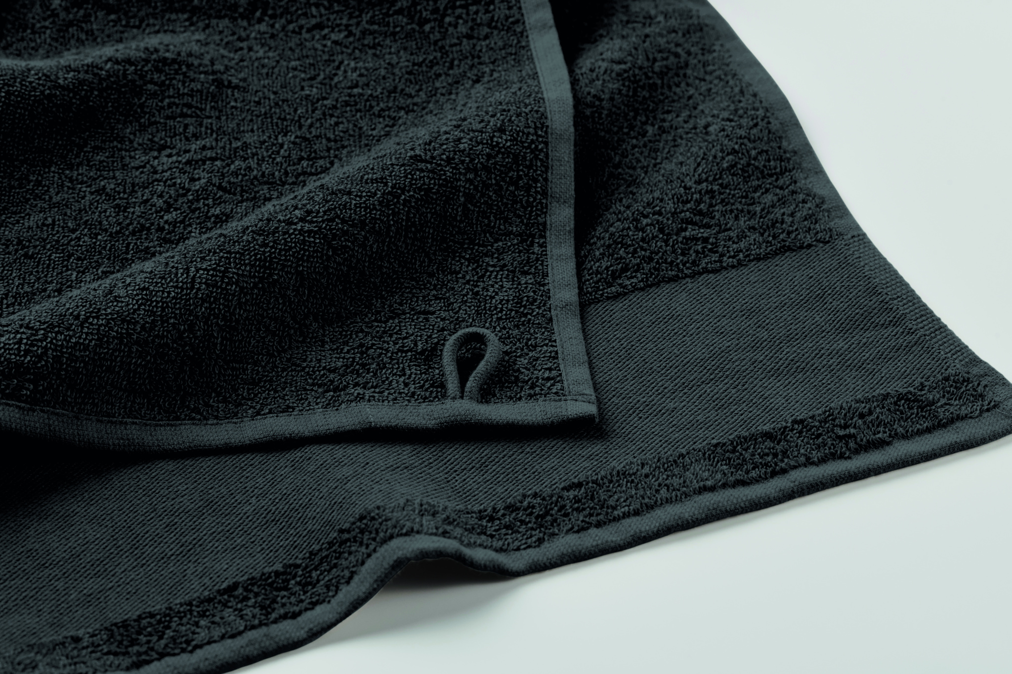 Must 100% puuvillast käterätik, 380 g/m² kangast, puuvillase riputusaasaga. Pehme ja imava disainiga. Mõõt 50 cm x 100 cm.
