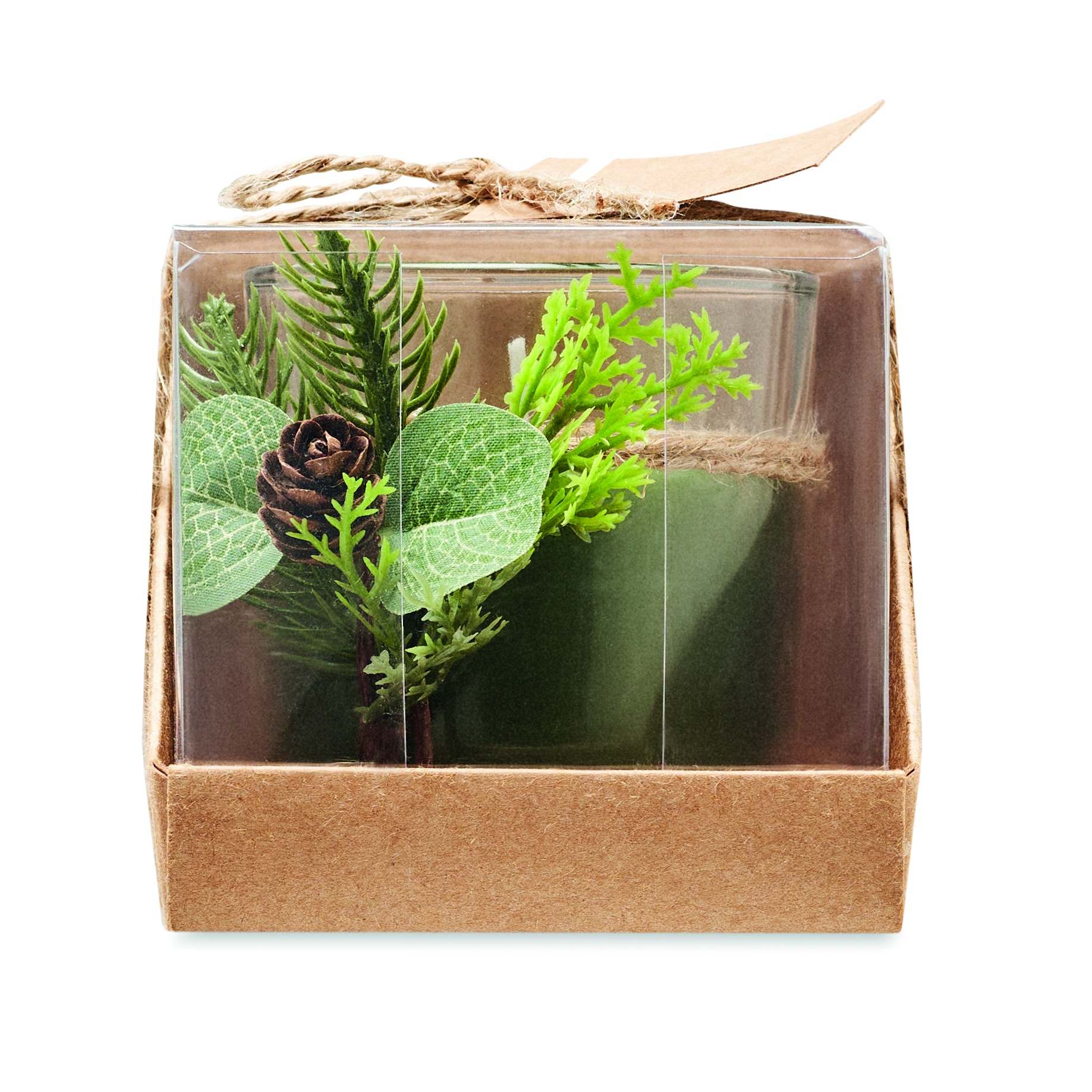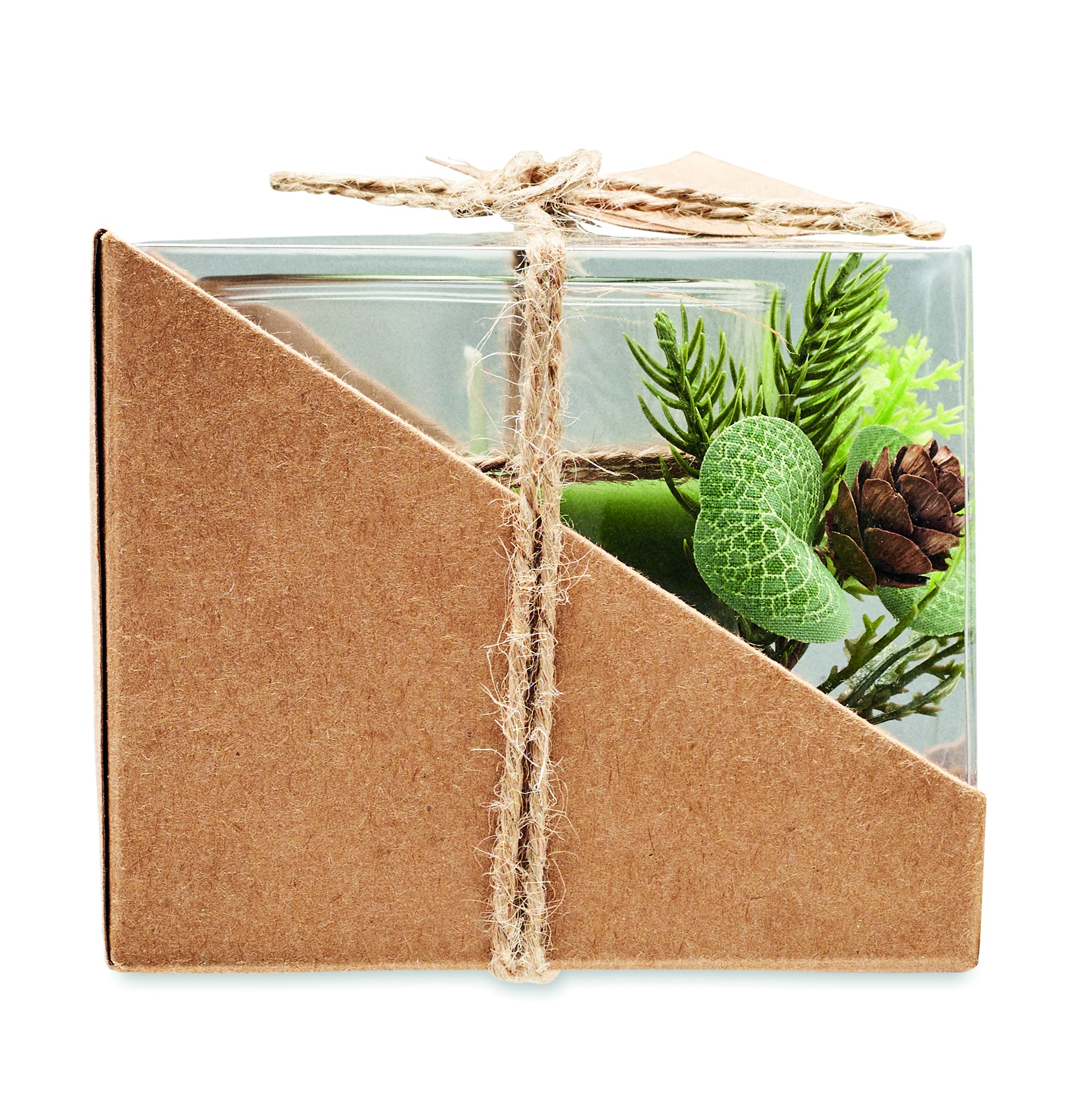 Klaasist küünlaalus (120 gr) metsaseadega. Esitatakse džuudist nööri ja kraftsildiga papp- ja PVC karbis. Küünal kaasas.