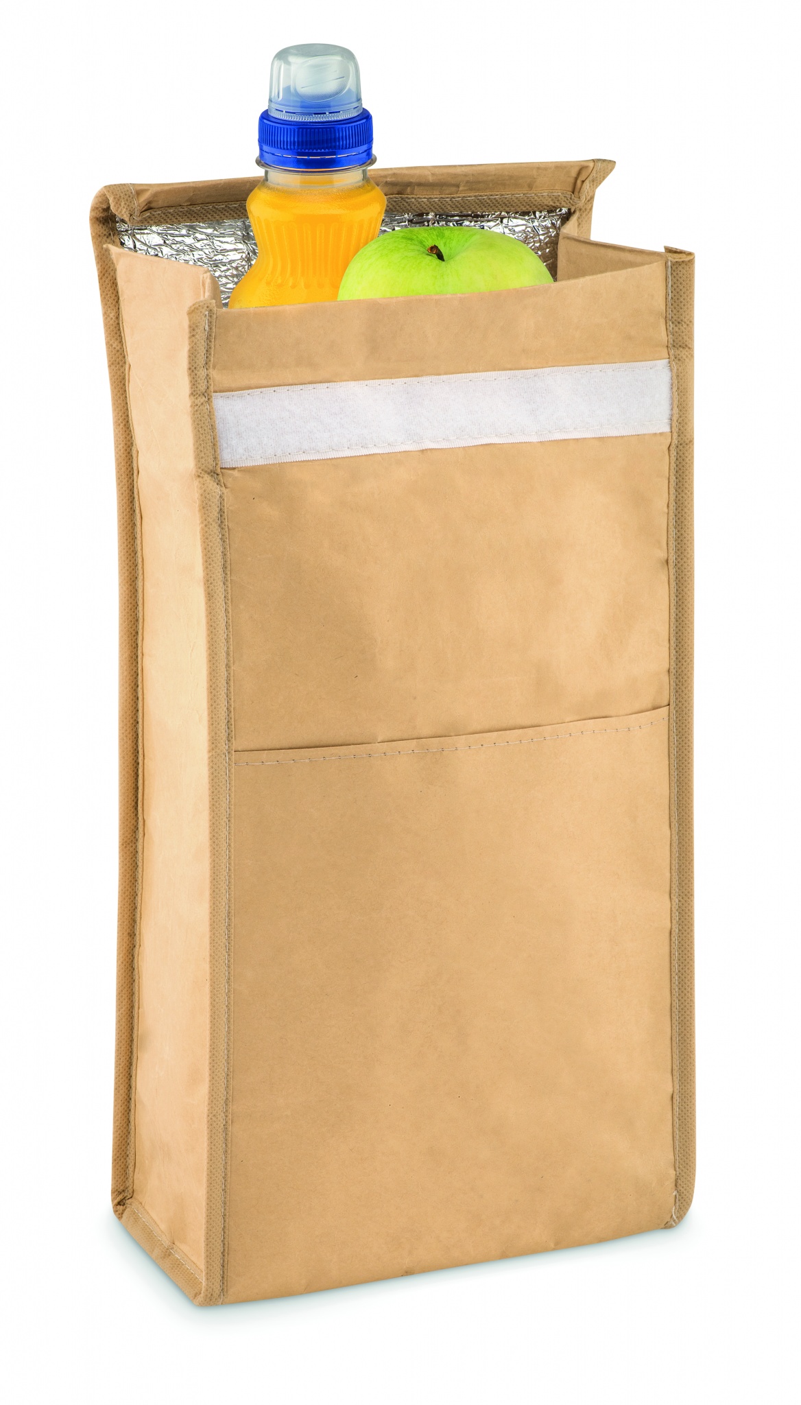 Kootud paberist kootud külmakott esitaskuga. Isolatsioonimaterjal: PE vahtkiht. Mahutavus 3L.