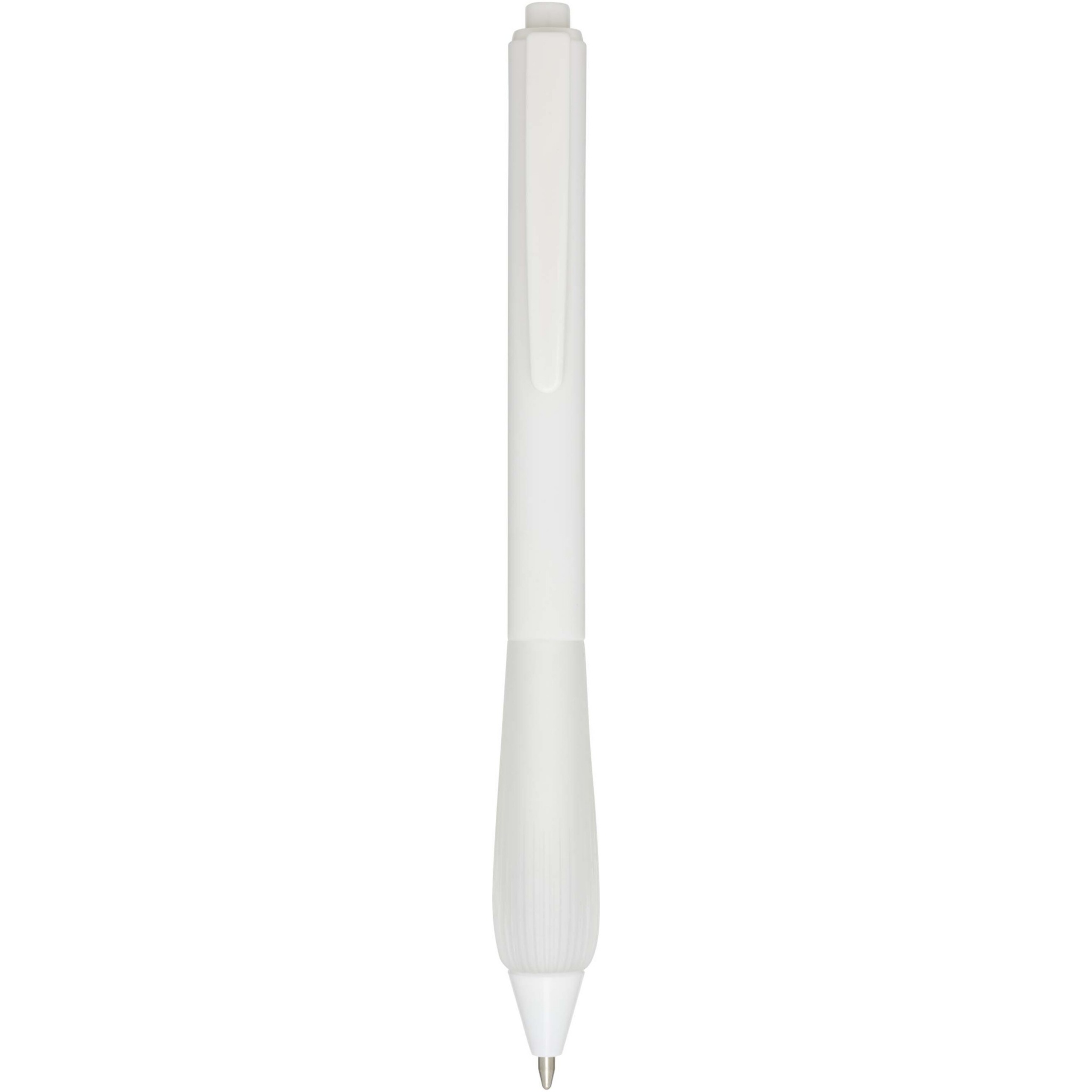 Taaskasutatud plastist pastapliiats kummeeritud silindri ja TPR-st käepidemega. Tindi värvus: sinine. Kirjutamise pikkus: 1000 meetrit. Otsa suurus: 1,0 mm.