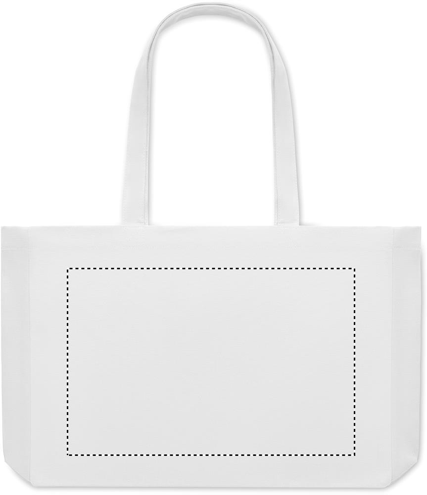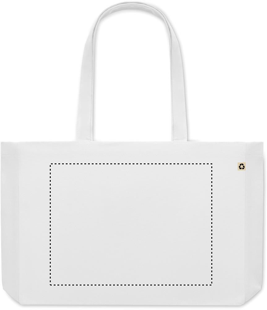 Taaskasutatud lõuendist ostukott või rannakott, 50% puuvill ja 50% taaskasutatud puuvill, pikkade sangade ja servadega. 280 gr/m².