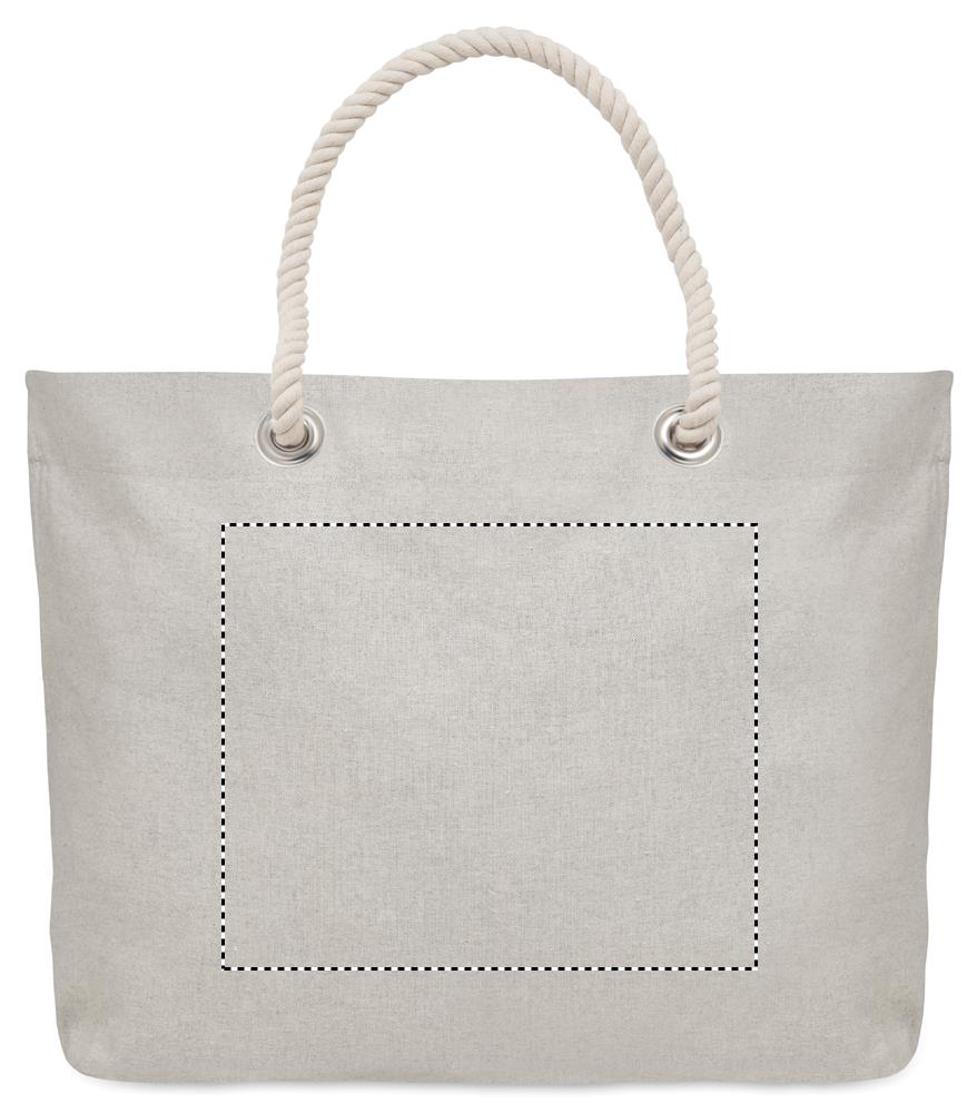 Ranna- või ostukott taaskasutatud puuvillast (80% taaskasutatud puuvill, 20% tavaline puuvill) nööri käepidemetega. 220 gr/m².