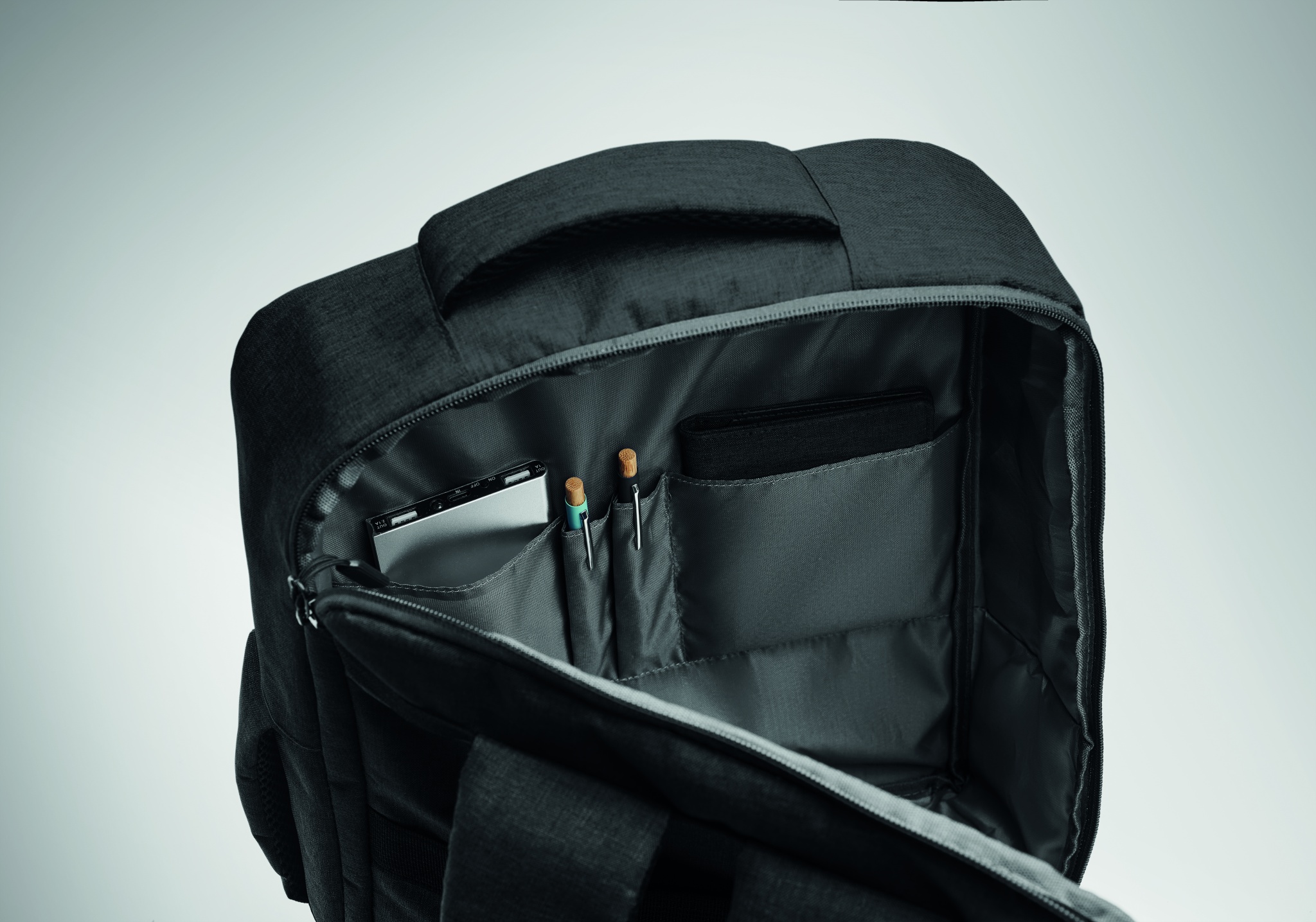 Logo trade reklaamkingitused foto: 15-tollise sülearvuti seljakott, valmistatud 300D RPET-st ja 210D RPET-voodriga