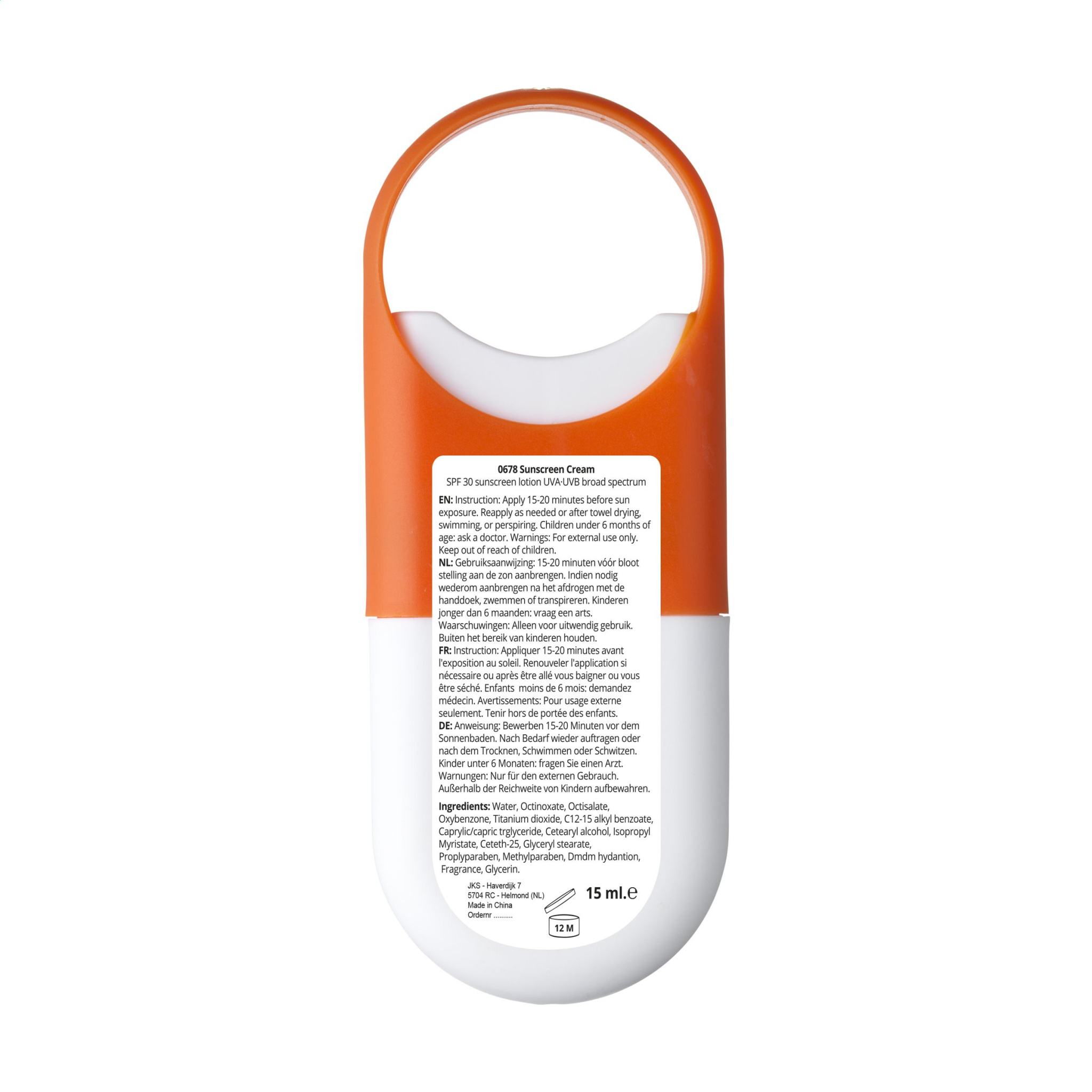 Kaitsev päikesekaitsekreem (tegur 30) käepärases aurusti ja suure riputusaasaga plastikust pihustuspulgas. Parim enne: 12 kuud pärast avamist. Sisu 15 ml. Koostis: vesi, oktinoksaat, oktisalaat, oksübensoon, titaandioksiid, C12-15 alküülbensoaat, kaprüül-/kapriintriglütseriid, tsetearüülalkohol, isopropüülmüristaat, tseet-25, glütserüülstearaat, hüdroksübensoon, metüülparabensoparabeen Glütseriin.