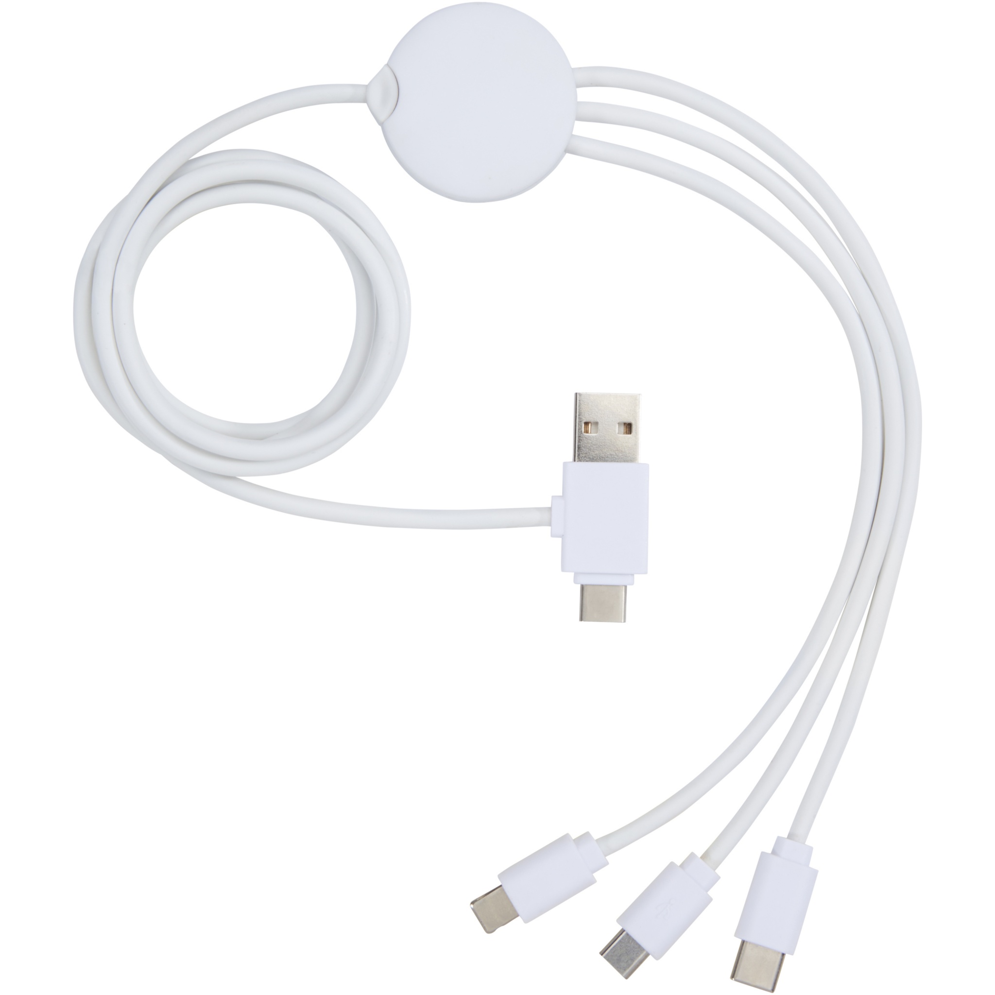 Antibakteriaalse lisandi ja 5 erineva pistikuga laadimiskaabel: C-tüüpi sisend, USB-A-sisend, C-tüüpi väljund, iOS-i väljund ja mikro-USB-väljund. See võimaldab kasutada kaablit ka C-tüüpi väljundseadmetega, mis on kaasas uuema põlvkonna telefonidele ja Macbook-arvutitele. Kaabli pikkus on 100 cm. Antibakteriaalne lisand on võimeline tõhusalt vähendama materjali pindadel olevate bakterite taset, pidurdades tõhusalt bakterite ja seente kasvu, mis põhjustavad tekstiil- ja plasttoodete ebameeldivat lõhna, määrimist ja lagunemist. Testitud ISO 20743:2013 järgi.