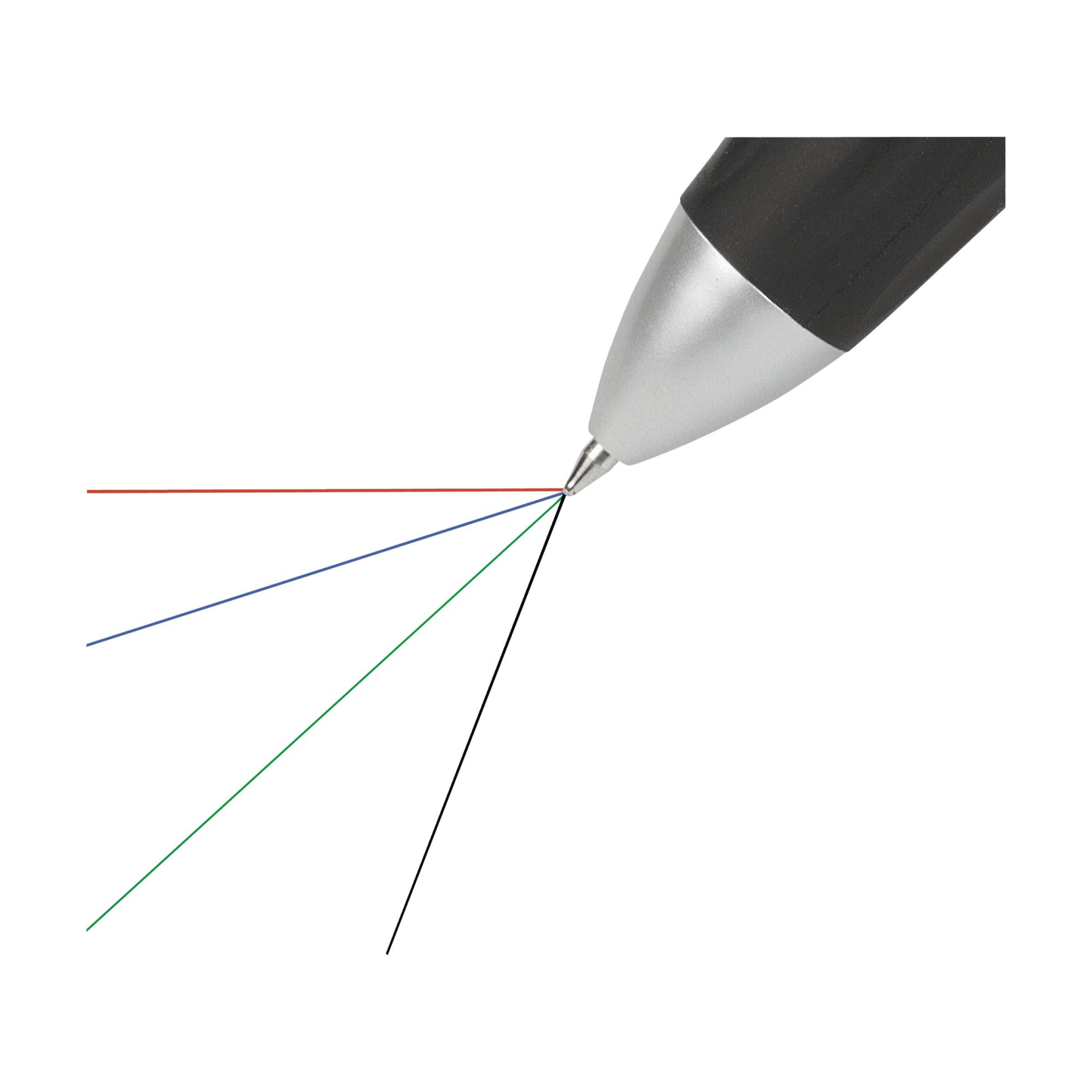 4-värviline libisemiskindla kummist käepidemega pastapliiats. Varustatud sinise, rohelise, punase ja musta tindiga.