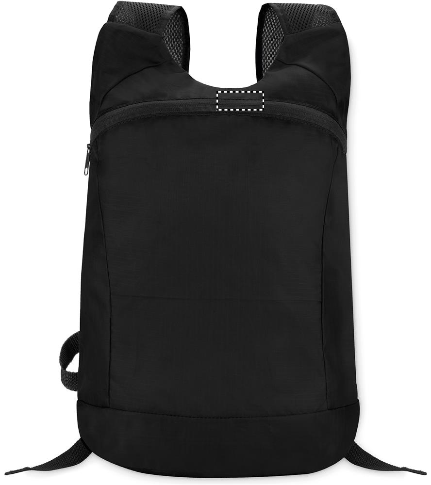Ripstop polüestrist kokkupandav spordiseljakott lukuga eesmise ava, võrgust õlarihma ja eemaldatava kotiga.