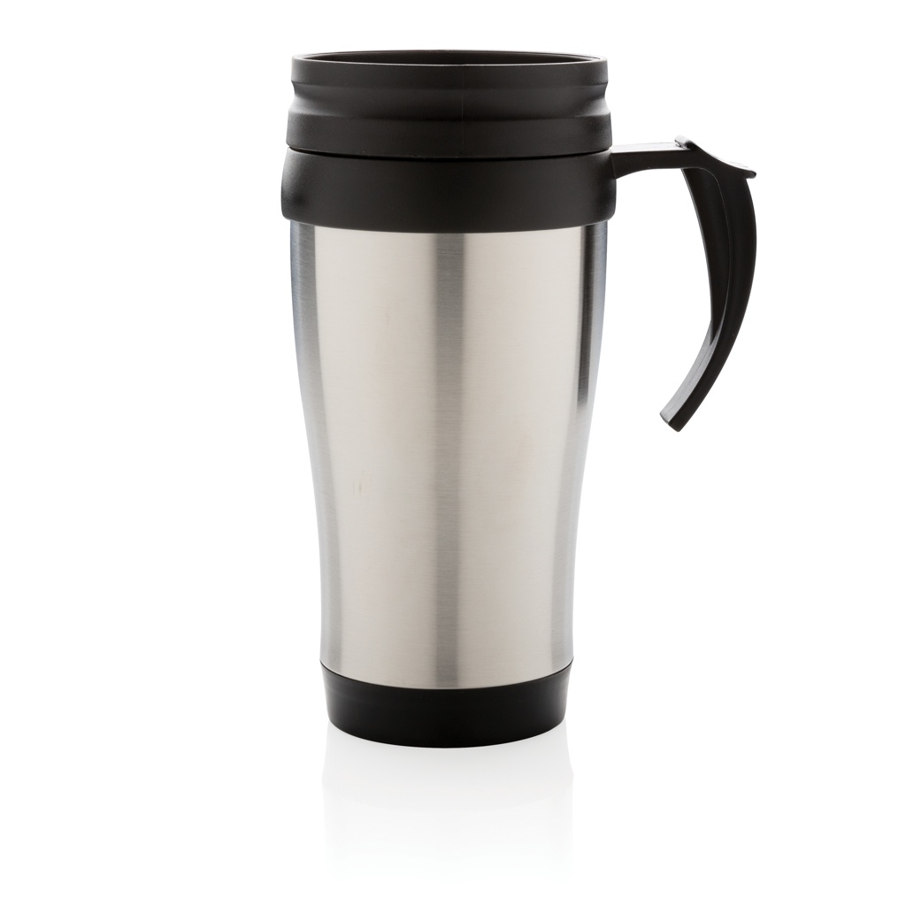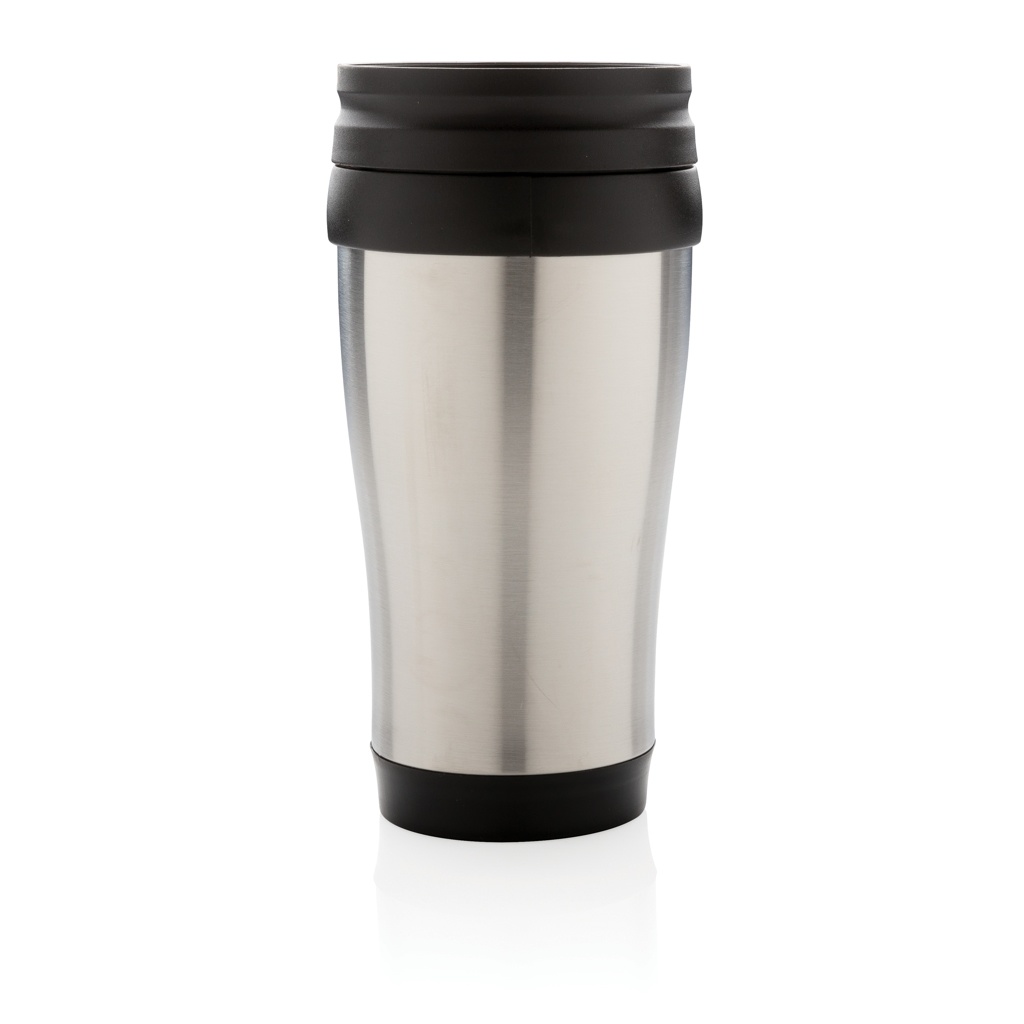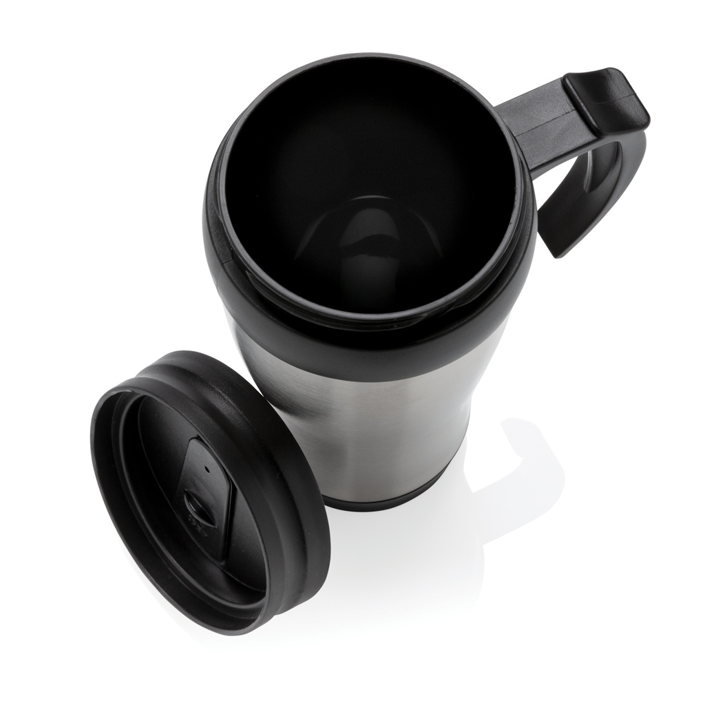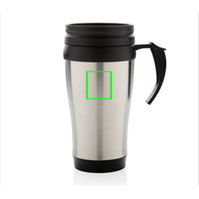 350 ml roostevabast terasest väljast ja PP seest kruus kaane ja põhjaga musta värvi.