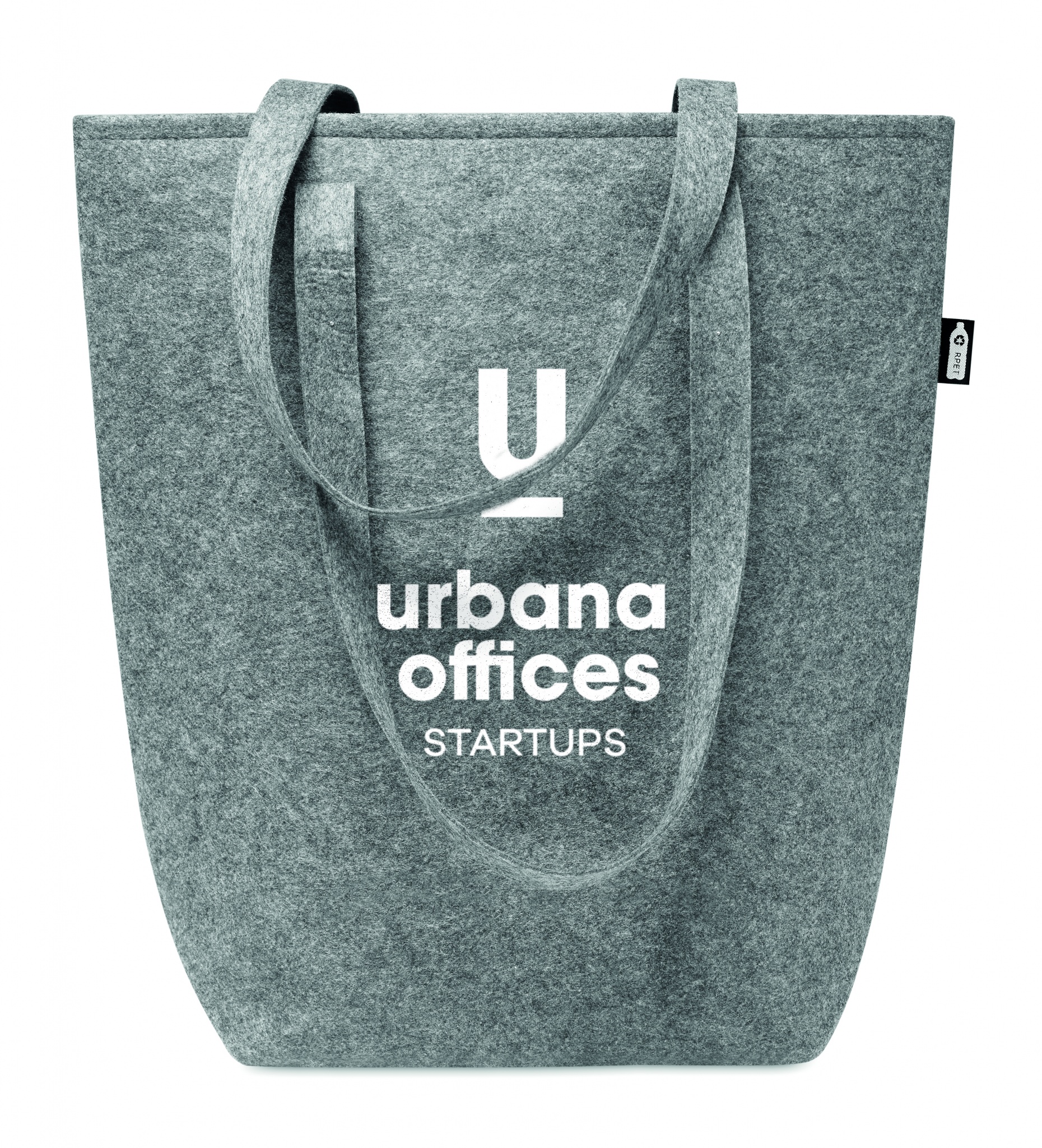 RPET vildist ostukott, pikkade sangade ja põhjasõlmidega. Vildi paksus: 2 mm.